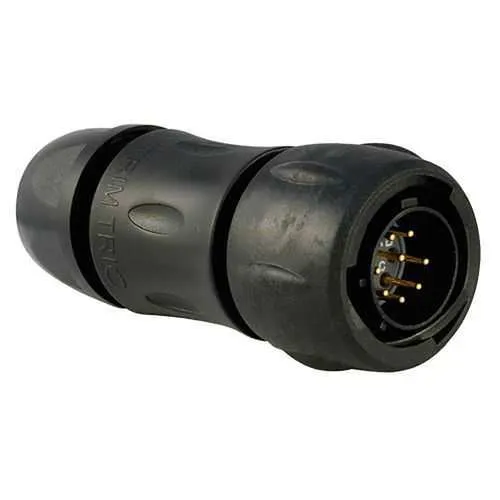 The connector uses a straight plug with a sealing gland backshell and a 1/3 bayonet coupling for secure, vibration‑resistant mating. It supports cable diameters from 3 to 12 mm and a compact 66.7 mm length, enabling straightforward panel mounting in tight spaces. Mating cycles reach 250, allowing repeated connections without significant wear. This makes field installation quicker and more reliable in automation cabinets.
