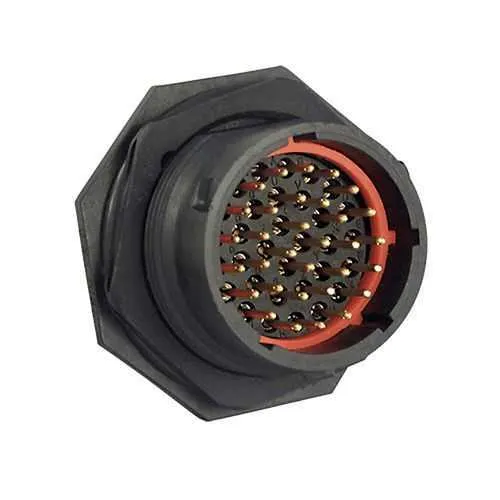 The connector supports up to 250 mating cycles, reflecting robust lifecycle performance for serviceable equipment. It uses crimp contacts and a 32-position layout, with a lightweight 23 g receptacle. Plan for periodic inspection, ensure correct backshell and orientation, and stock compatible crimp contacts and jam-nut accessories to minimize downtime and extend system uptime.