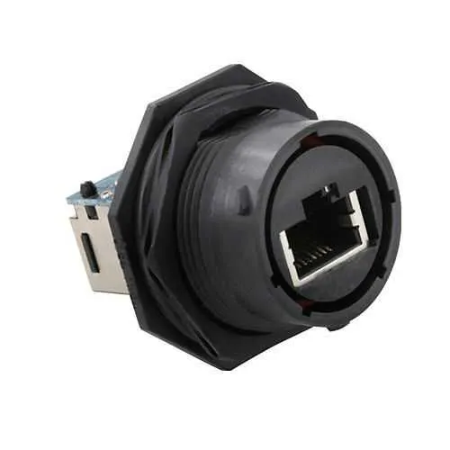 Feature: IP68/IP69K rated plastic housing and jam-nut receptacle design. Business Impact: delivers rugged ingress protection against water, dust, and vibration, reducing field failures and downtime. Application: ideal for washdown environments, outdoor automation, and marine or mining installations. Feature: Polyamide insert, plastic shell, and aluminium nut construction. Business Impact: provides chemical resistance, lightweight durability, and secure mounting for long service life. Application: panel mount in compact enclosures where space is at a premium. Feature: Operating range -40 °C to 105 °C and UV resistance. Business Impact: supports operation in extreme climates without additional heating or cooling, lowering total cost of ownership. Application: cold steady-state warehouses to hot outdoor sites. Feature: Mating cycles rated at 250. Business Impact: accommodates typical maintenance cycles without performance degradation, improving system uptime. Application: control cabinets and network nodes with periodic replacements. Feature: Salt spray resistance (500 hours) and RoHS/REACH compliance. Business Impact: ensures durability in corrosive environments while meeting environmental and regulatory requirements. Application: offshore platforms and chemical plants. Feature: No backshell option and single-contact interface. Business Impact: simplifies installation, reduces BOM complexity and cost, while ensuring a compact, reliable connection. Application: tight panel layouts and existing RJ45 networks.