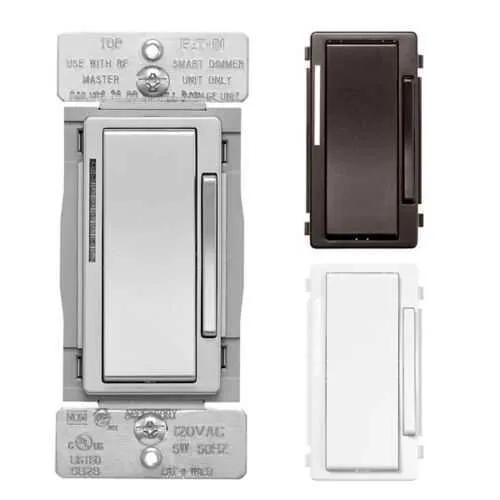 WACD-C6-SP-L Eaton: Eaton Wi-Fi smart dimmer, Flush, 120V, Back and side wire, White, Oil Rubbed Bronze, and Silver Granite, Single-pole, Three-way, 32°F to 104°F (0°C to 40°C), Single-phase, Multi-location, PC/PBT, WFD30, WiFi
