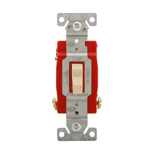 WD1222V Eaton: Toggle Switch, Ivory, Screw, Polycarbonate, Flush, Two-pole, Dual Pole, Brass, 120/277 Vac, #14 to 10 AWG, Back and side