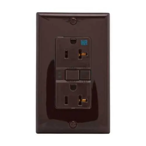 WRSGF20FB Eaton: Eaton GFCI receptacle,NAFTA compliant,Weather resistant,Self-test,#14 - 10 AWG,20A,Residential,Commercial,Flush,125 V,GFCI,Back and side wire,Brown,Brass,Receptacle,Weather resistant,Polycarbonate,5-20R,Two-pole, three-wire, grounding