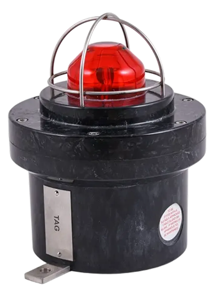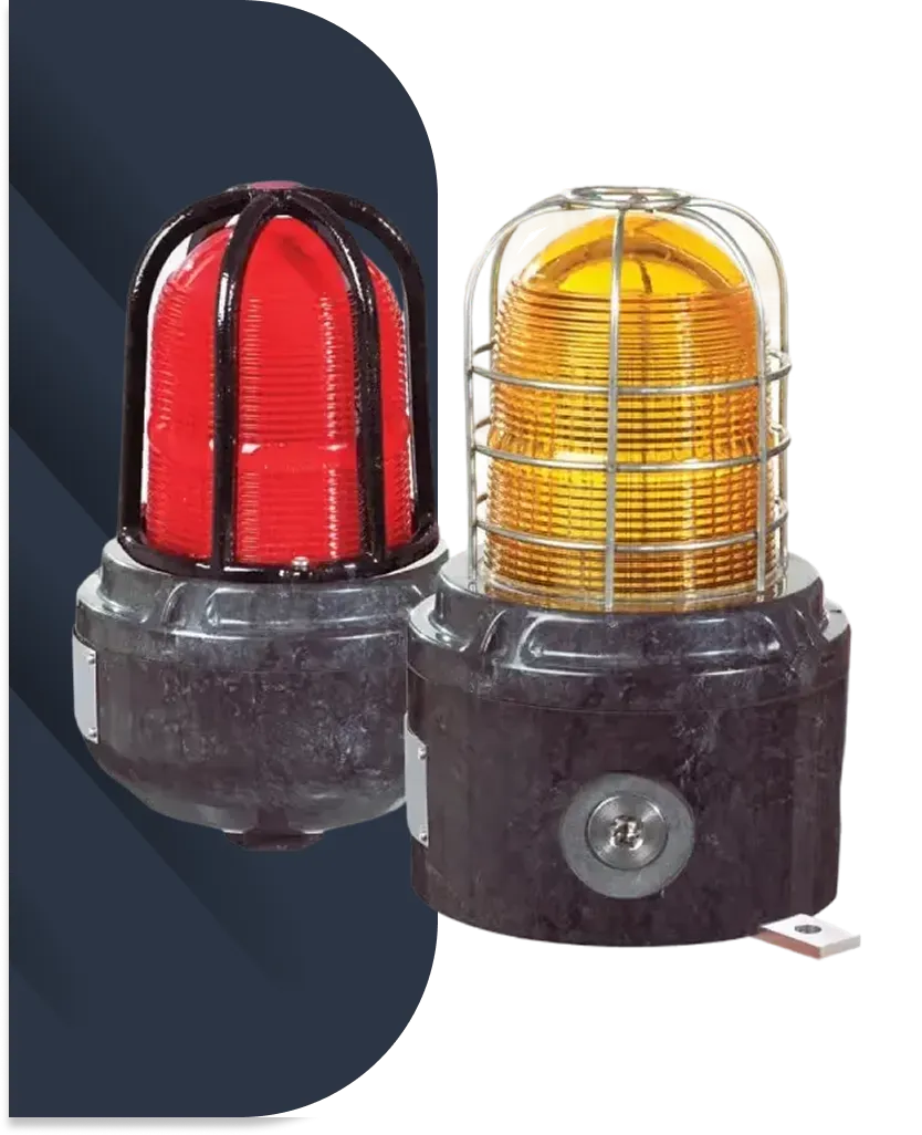 High-intensity 5-joule visual warning beacon certified for explosive gas and dust atmospheres. Available in red or amber with all-weather GRP housing for marine and industrial harsh environments.