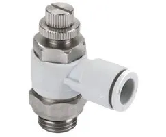 The E0K510418 supports 4 mm outer diameter tubes and uses a push-in insert with an O-ring sealed G1/8 threaded connection. This enables tool-free installation and removal in compressed air systems, reducing assembly time and enabling rapid field changes in compact equipment.