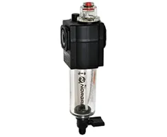 Regular inspection of the manual drain and bowl condition, along with periodic replacement of elastomer seals, keeps performance stable. The 1/4" PTF port supports standard connections, while inline or modular configurations reduce downtime during upgrades. Consistent lubrication, clean air supply, and scheduled drain checks help maximize tool life and overall process efficiency.