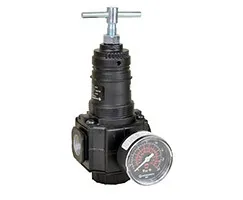Key performance specs include a 0.7–17 bar adjustable outlet range, 20 bar maximum inlet pressure, and a 105 dm3/sec (222 scfm) flow capacity. The balanced valve design promotes stable downstream pressure regardless of load changes, reducing pressure spikes that can disrupt automation cycles. Relieving operation helps protect downstream circuits during dead-end events, while gauge port access supports continuous monitoring for consistent control in manufacturing lines.