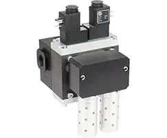 SCVA101DE1A02400 Norgren: Redundant valve assembly, pneumatic self- monitoring with integrated safety silencer | Ensures safe loading and venting | Requires no cyclical monitoring or evaluation system | A complete range in sizes - DN 8, 10, 20 and 32 | With the appropriate application, performance level “e” (cat. 4) of DIN EN ISO 13849-1 is achieved for the safety function “Pressure building up from ‘1’ to ‘2’ and pressure dropping from ‘2’ to ‘3’ “- DGUV approval