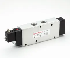 The V63D513A-A313J provides a high-flow rate of 4200 liters per minute and supports operating pressures from 3 to 10 bar. It is a 5/2 valve with solenoid pilot actuation and an air-spring return, suitable for fast and reliable pneumatic switching in demanding automation tasks.