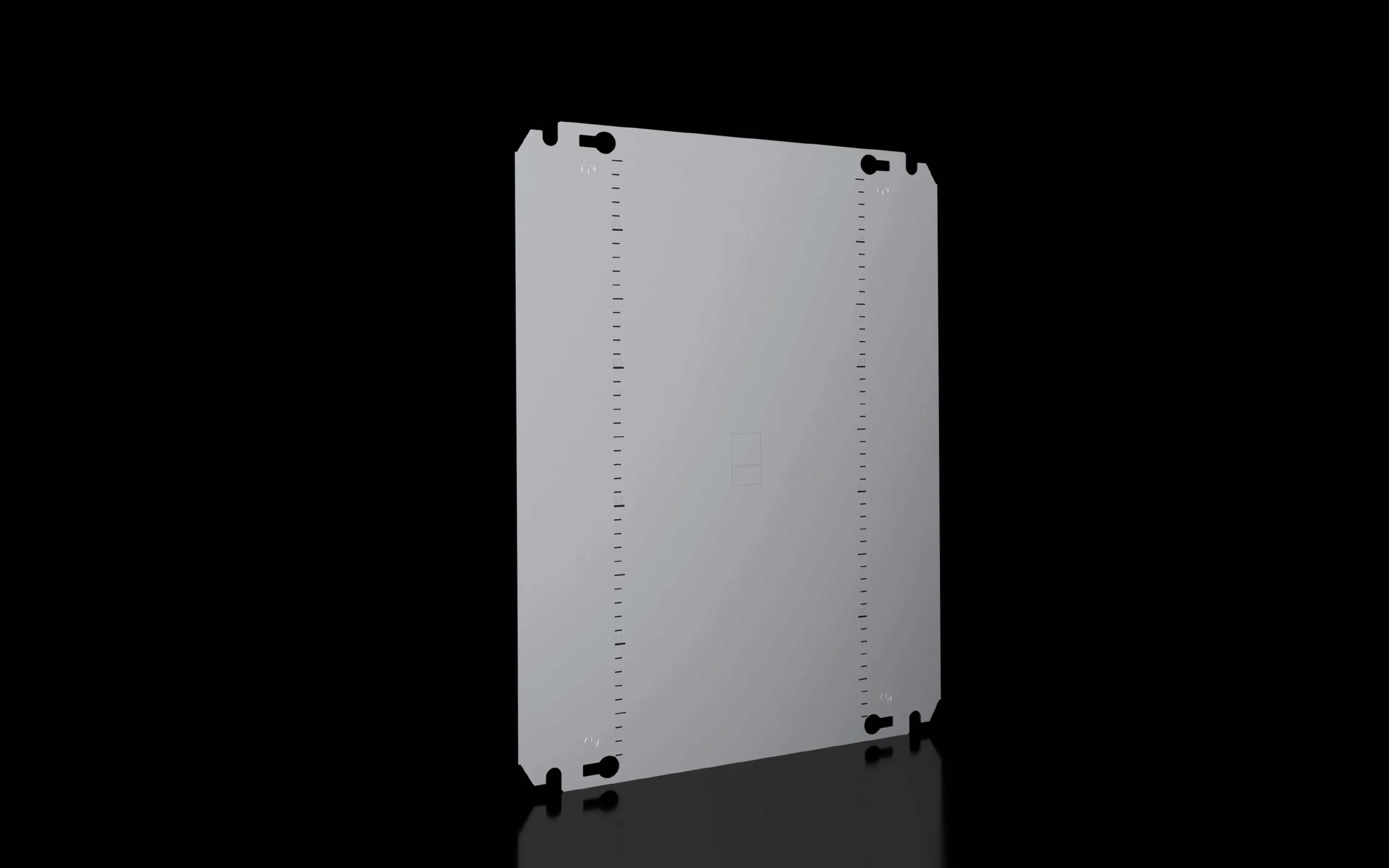 The AX 5051.392 is designed to fit 1,145 mm x 1,175 mm plate dimensions within 1,200 mm wide x 1,200 mm high frames. Begin by aligning the plate with the enclosure mounting points, ensuring the 2.5 mm thick steel plate sits flush against the frame. Use compatible screws and washers to secure the plate, then verify alignment before attaching any subcomponents.