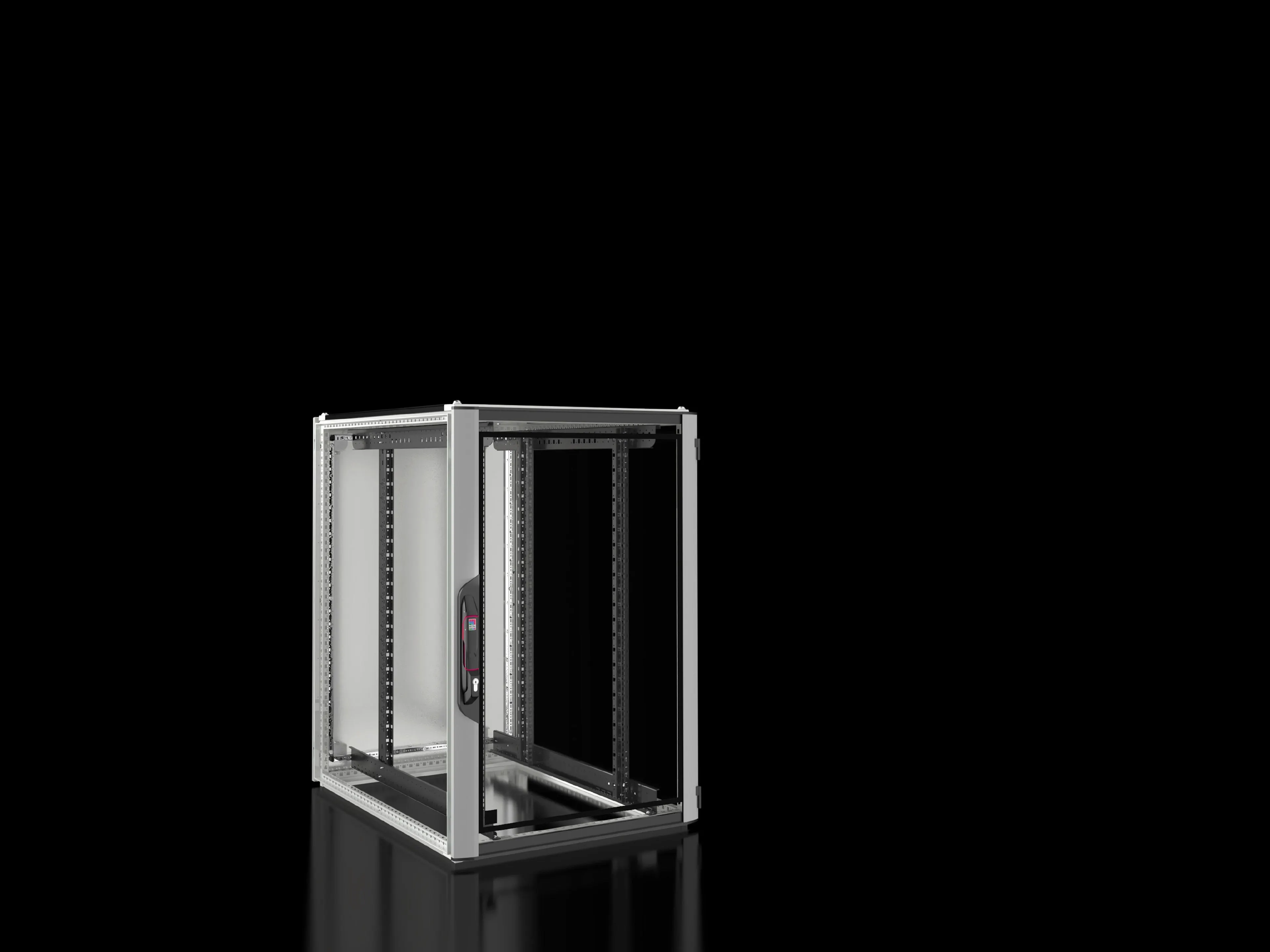 VX enclosure frame with doors and roof plate | Glazed aluminium door at the front, 180° hinges | Lock front and rear: Comfort handle for profile half-cylinders and security lock 3524 E | Mounting angles, 482.6 mm (19") | Spacers, height 50 mm, to raise a cover plate above the fan cut-out in the roof plate, for passive cooling (supplied loose). Not required for variants without a cut-out. | 12 x 482.6 mm (19") fastener, 1 U, conductive (supplied loose) | 25 multi-tooth screws, conductive (supplied loose) | IPPC pallet | Roof plate, multi-piece, with side cable entry in the depth, double-sided, prepared for fan mounting plate | Sheet steel rear door, solid, one-piece, 130° hinges