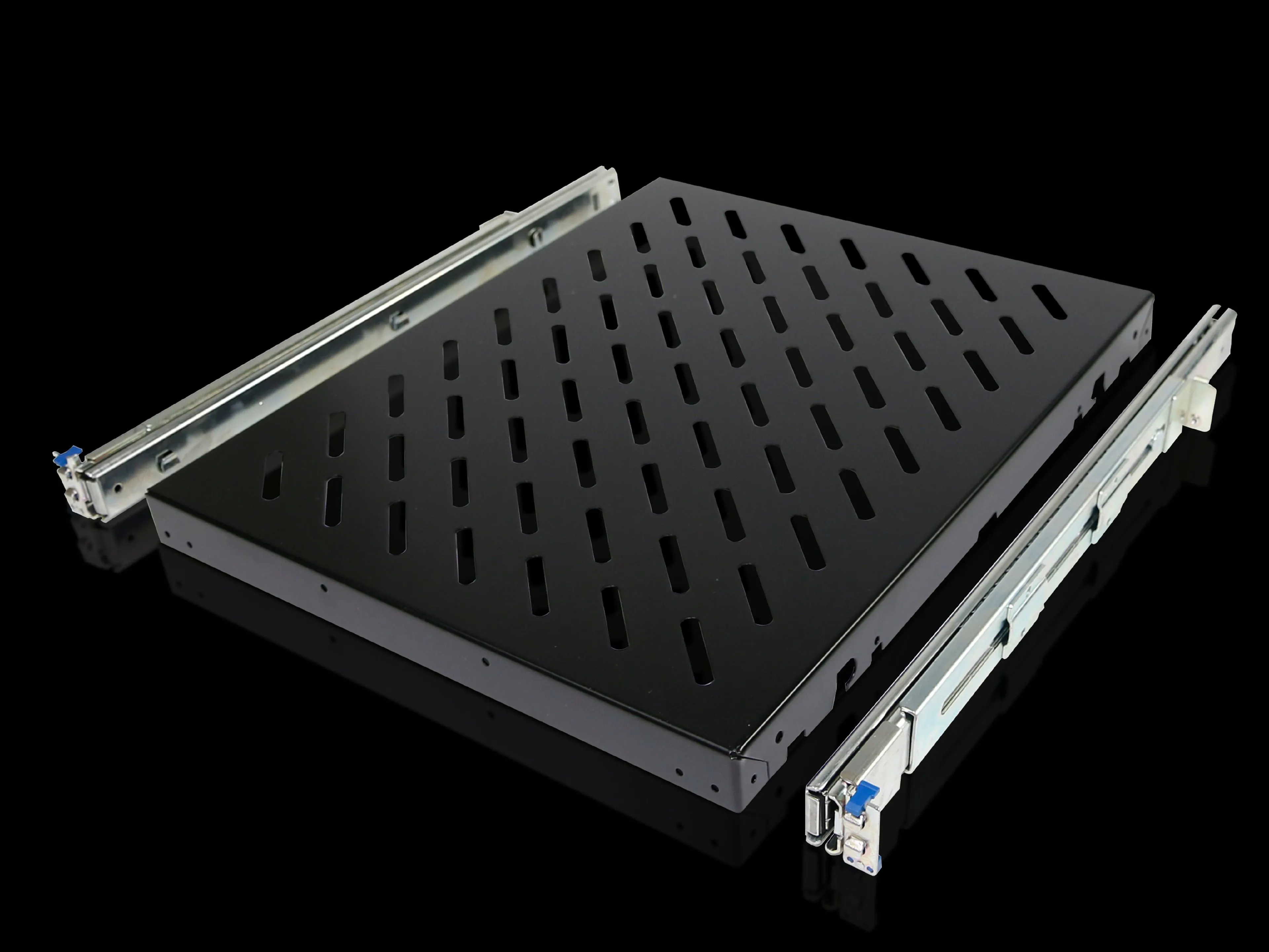 The pull-out telescopic slides allow front-access installation and service without interior enclosure rearrangement. This enables a one-person, tool-free operation, reducing maintenance time and minimizing enclosure openings during component swaps or inspections.