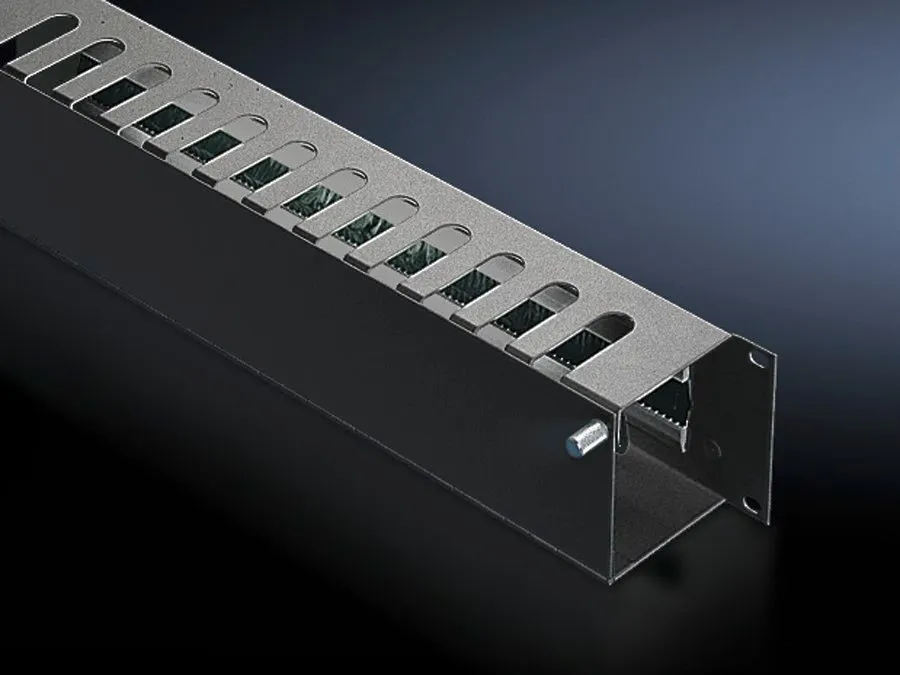 Feature: 1 U height and 482.6 mm width enabling compact, standardized mounting in 19" racks. Benefit: Efficient use of cabinet space and straightforward integration with existing infrastructure. Application: Ideal for horizontal management of patch cables in control panels and automation cabinets. Feature: Five cable routing bars with 100 mm depth each. Benefit: Clear, organized pathways reduce misrouting and simplify future changes in high-density cable layouts. Application: Suitable for busy data/automation environments where frequent re-patching occurs. Feature: Bar openings allow selective modification of cabling by removing or opening individual bars. Benefit: Rapid reconfiguration with minimal disruption, cutting changeover times and maintenance windows. Application: Dynamic production lines and serviceable automation stations. Feature: Panel constructed from sheet steel with plastic routing bars. Benefit: Durable frame with lightweight, flexible routing components supports long service life and cost-effective replacements. Application: Harsh factory environments where robust construction is required. Feature: Weight per pack 0.632 kg and PCF 2.4 kg CO2 eq (Cat B). Benefit: Manageable shipping weight lowers logistics costs; environmental footprint is transparently recorded for sustainability reporting. Application: Green manufacturing programs and supplier compliance tracking.