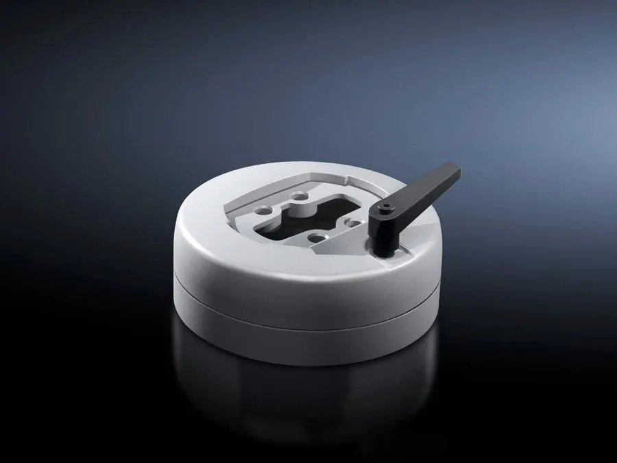 The data does not specify IP or CE ratings for this accessory. While the part is built from die-cast zinc and finished in RAL 7035 for durability, verify environmental ratings with Rittal or approved integrators before outdoor use. Indoor or protected environments are the typical application domain unless additional protections are specified.