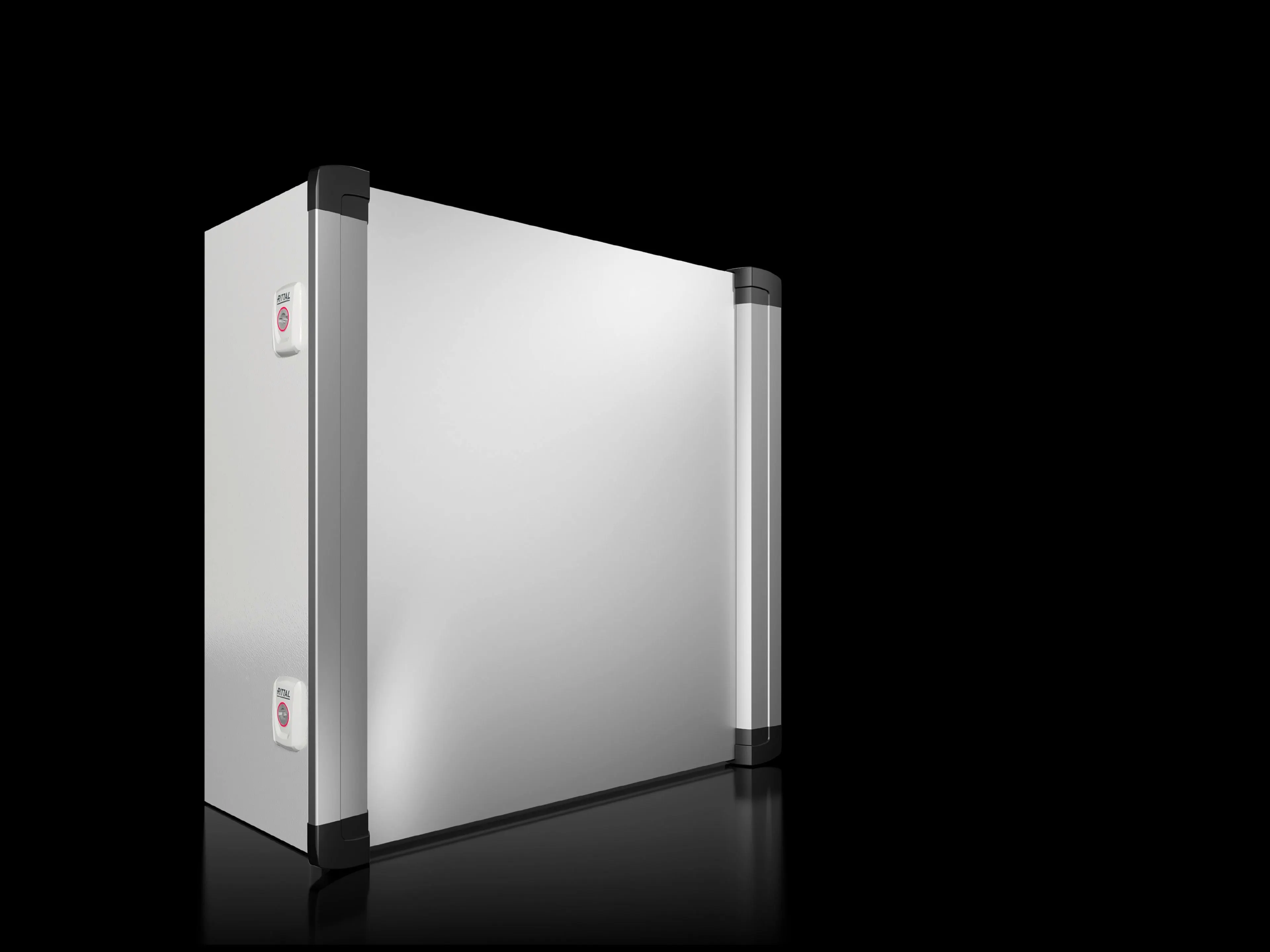 Enclosure: Sheet steel | Door: Sheet steel, all-round foamed-in PU seal | Front panel: Aluminium | Cover caps: Plastic