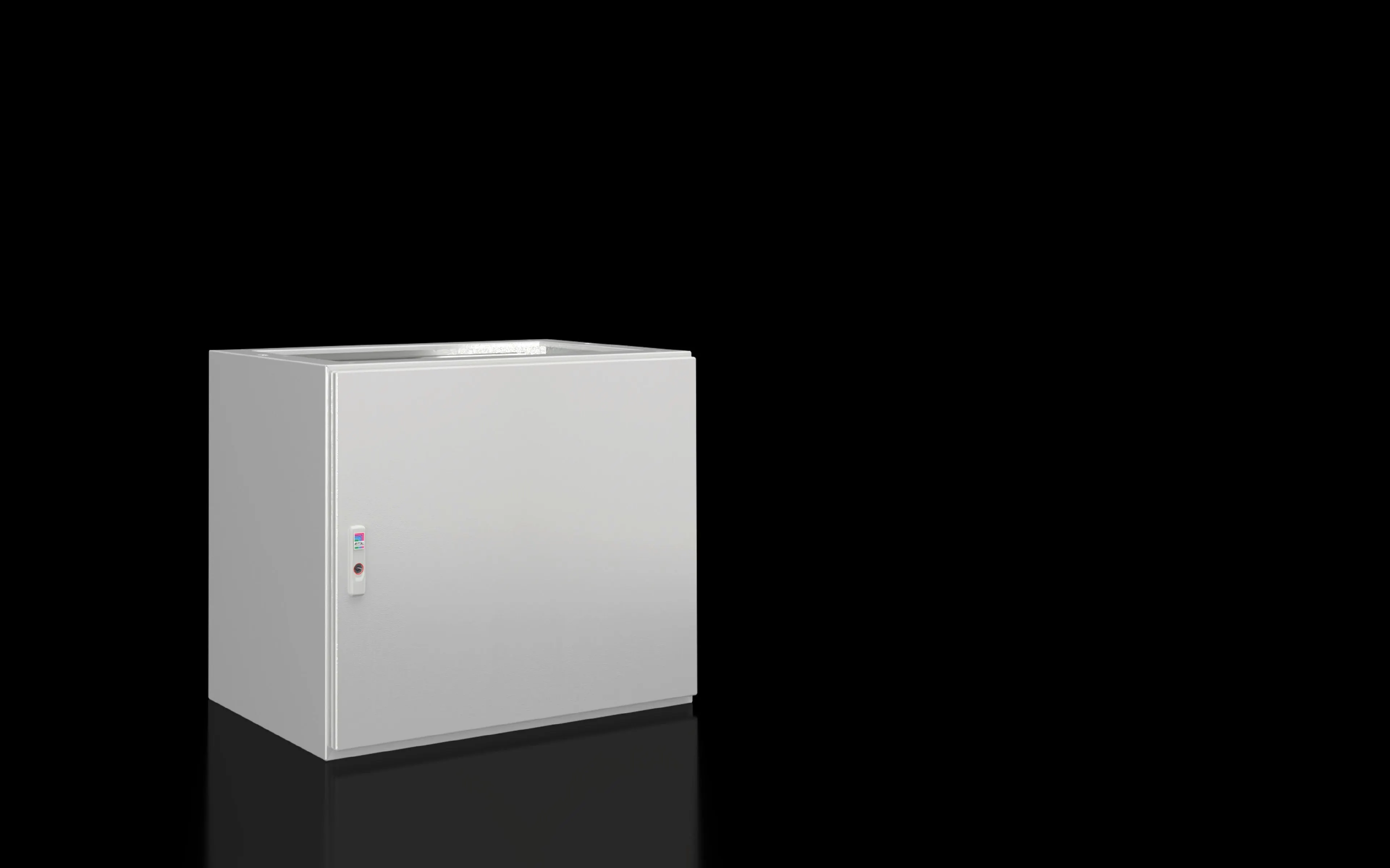 Enclosure: Sheet steel 1.5 mm | Door: Sheet steel, 2.0 mm, all-round foamed-in PU seal | Mounting plate: Sheet steel, 2.5 mm