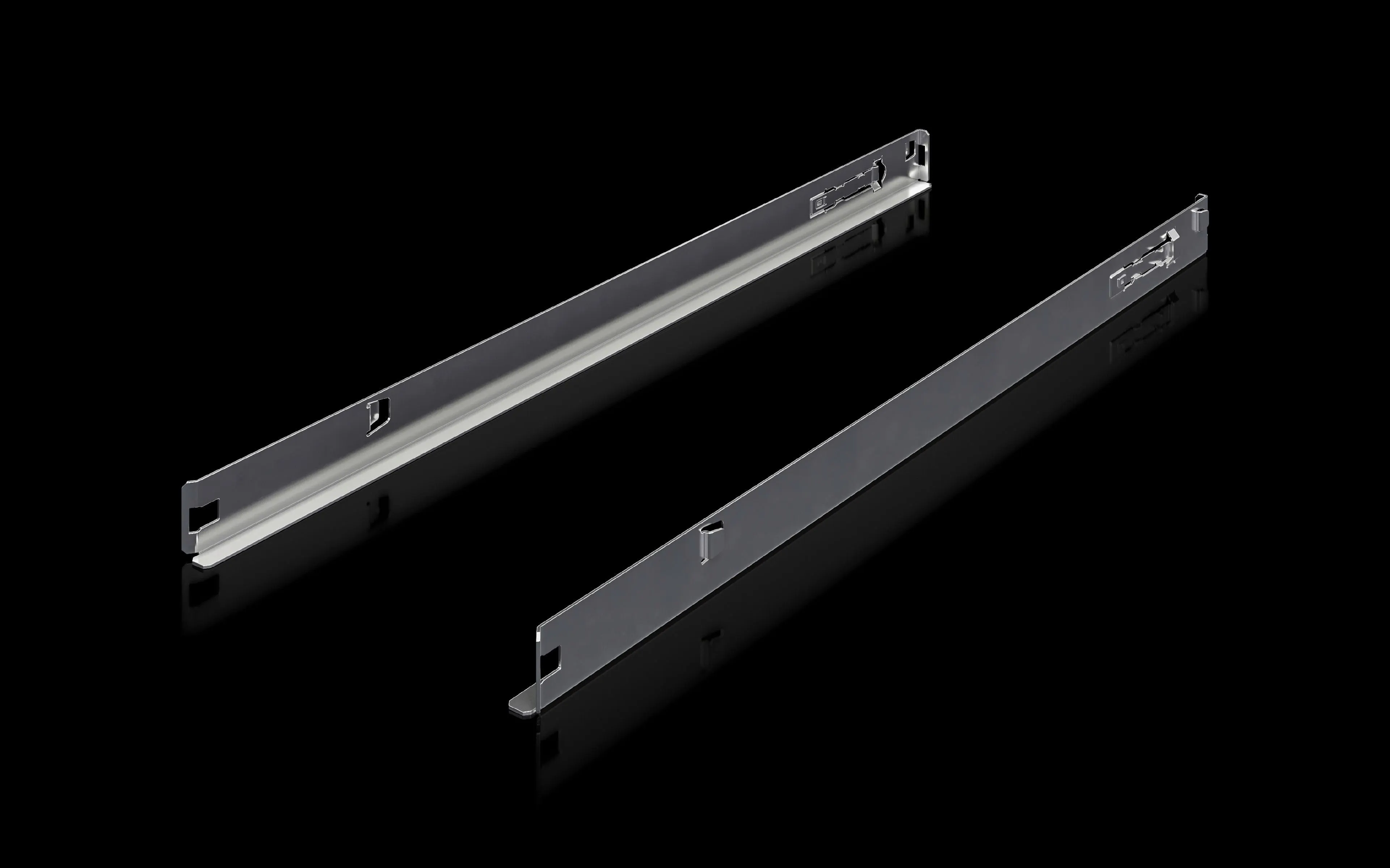 The rail is manufactured from sheet steel and finished with galvanisation, delivering corrosion resistance and durability suitable for demanding rack environments, spanning data centers and industrial cabinets.