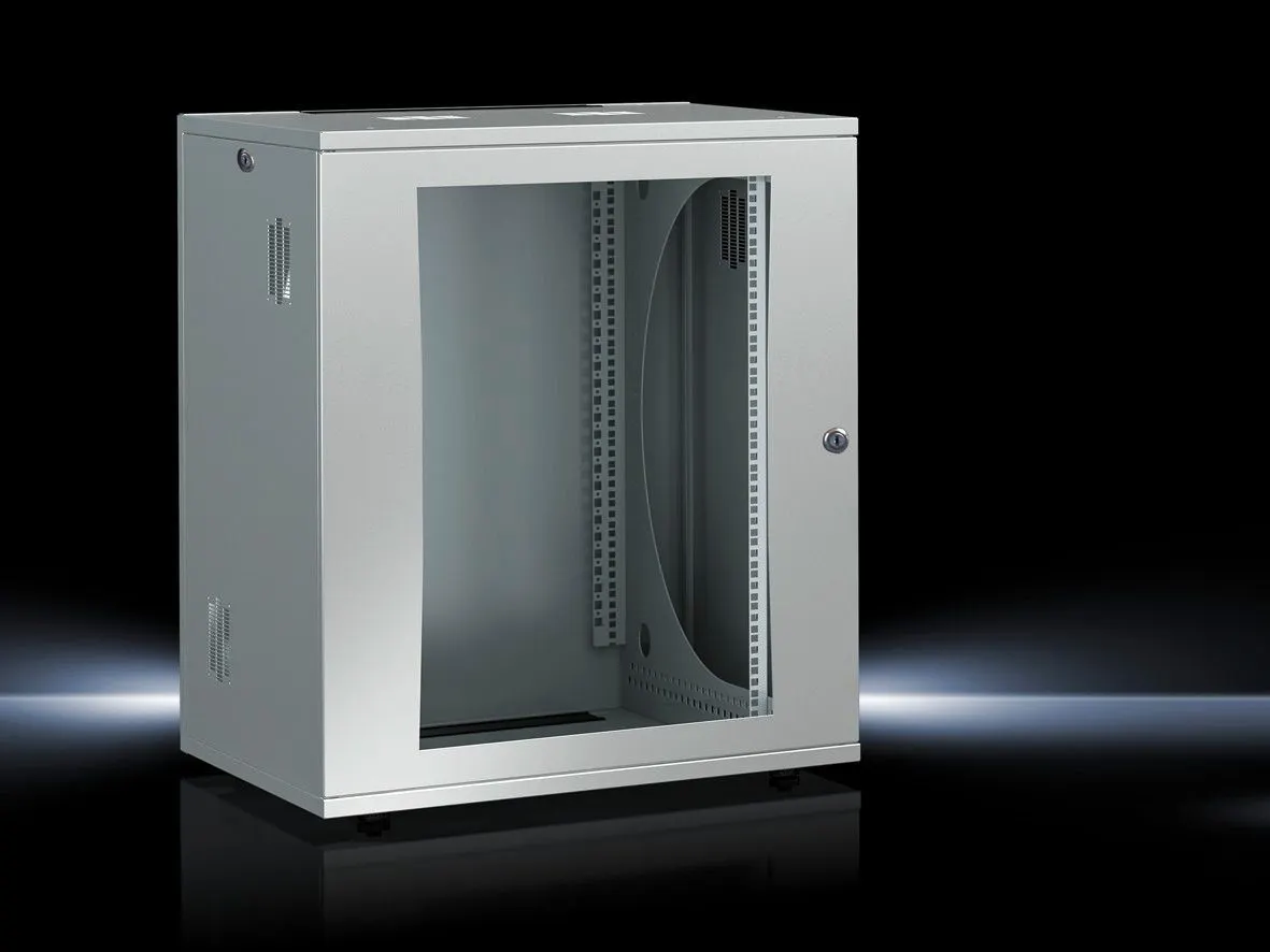 Ideal for industrial automation, electrical control panels, and machine-build environments where flexible wall or floor mounting, easy access, and quick installation are priorities. The 19-inch frame supports standard I/O modules and automation controllers commonly used in manufacturing.