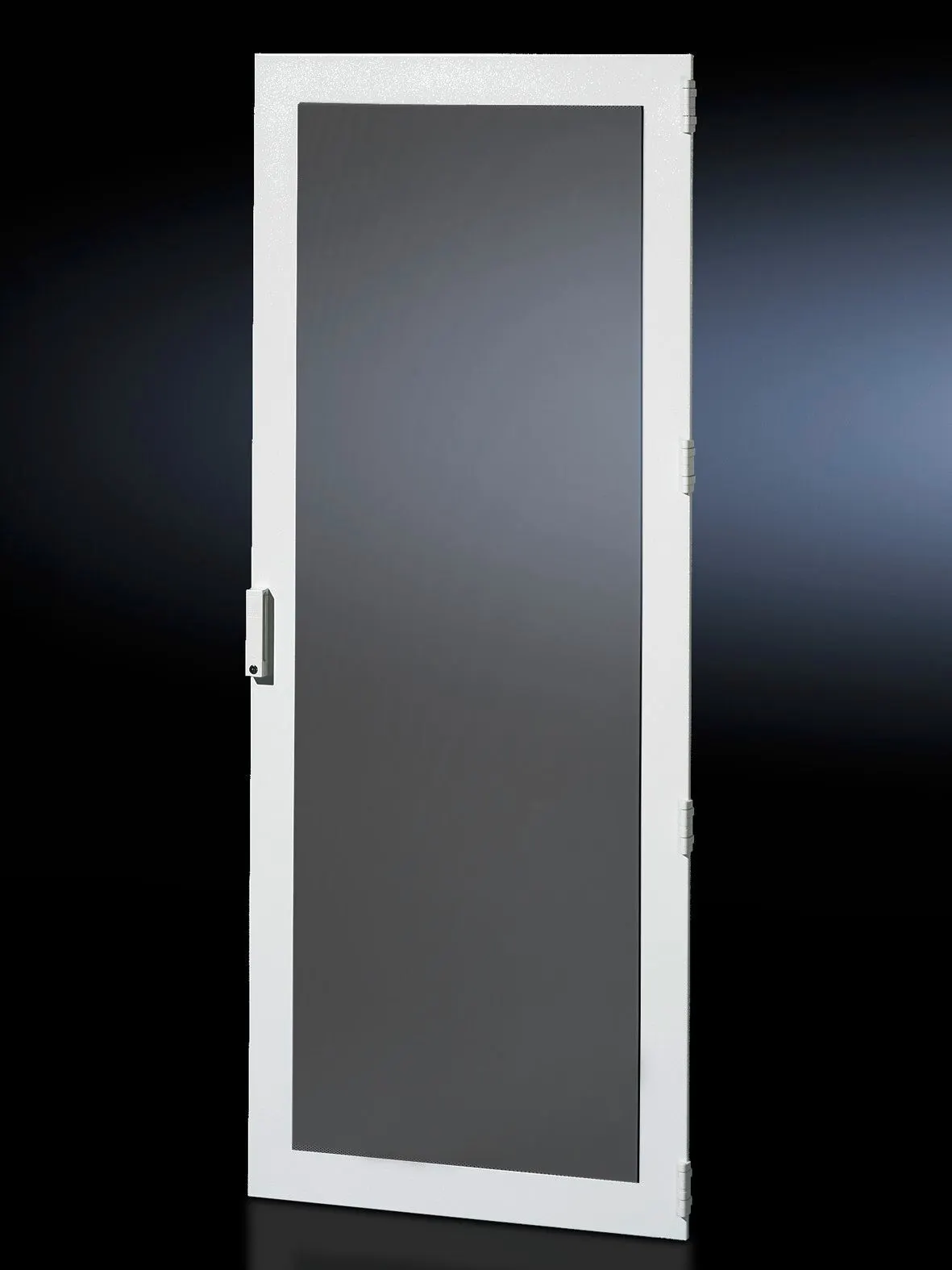 7824204 Rittal: With 180° hinges and swivel handle with security lock no. 3524 E, in exchange for comfort handle. For optimum air throughput in network enclosures with a high proportion of active components. Perforated surface with air inlet openings > 78%.