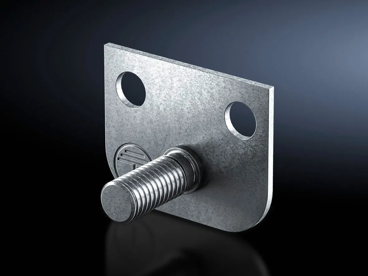 For connecting earth straps, earthing braids to the vertical and horizontal enclosure section. The connection bracket is connected to the enclosure frame with 2 screws and is securely contacted. Earth connection is carried out via the threaded bolt M8 x 20 mm.
