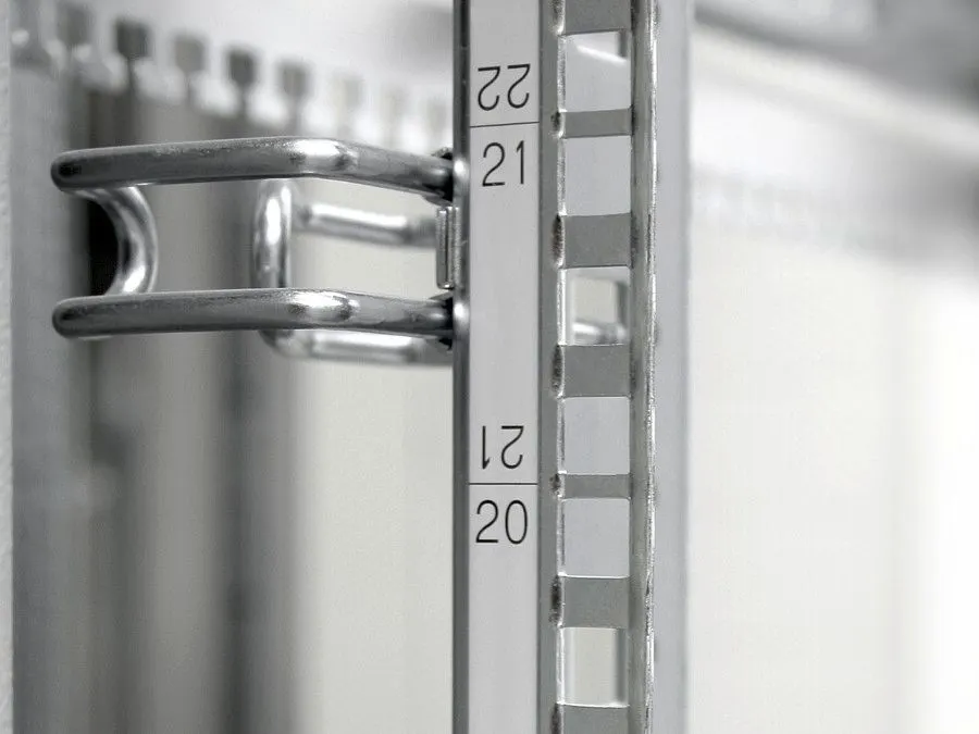 With numerical labelling on a 482.6 mm (19") pitch pattern for clear identification of the various height units.