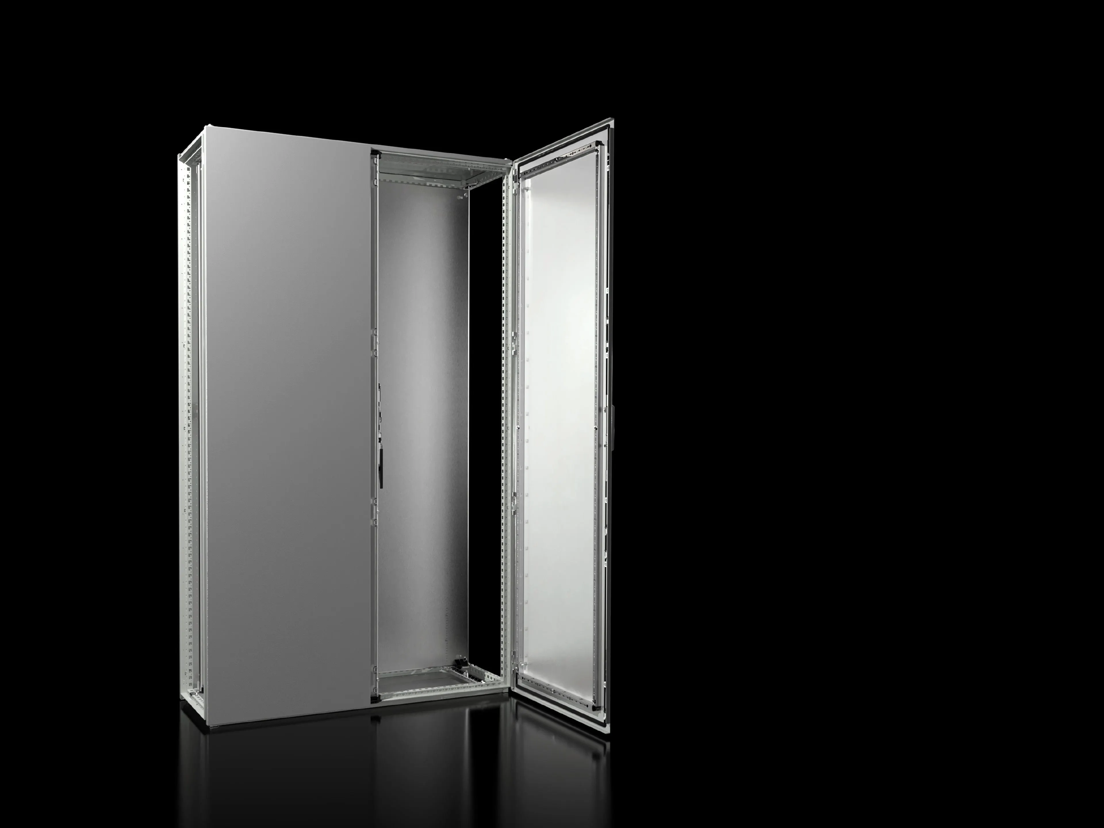 VX 8204.000 arrives with a mounting plate, two punched rails, and gland plates designed for quick interior fit. Consider hinge orientation (right by default, left swap available) and verify the mounting plate fits your internal components (1,099 x 1,896 mm). Plan for IP55-rated sealing and standard cable entry through the gland plates to maintain enclosure integrity during installation.