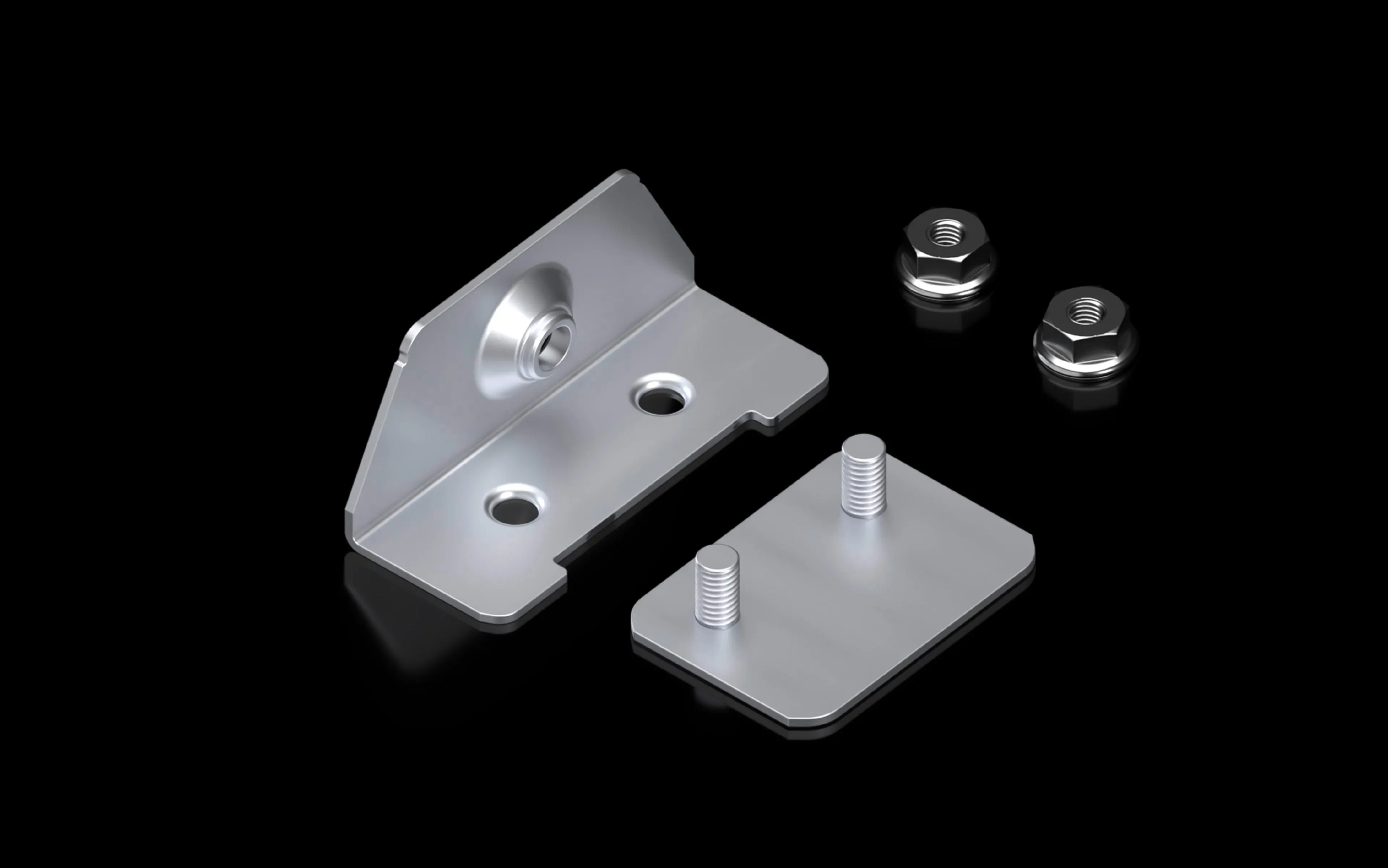 Begin by aligning the bracket with the base/plinth VX channel, then secure it using the included assembly parts. The installation options support attaching trim panels with brush strip or a vented trim panel, enabling a quick, robust fit and predictable panel alignment.