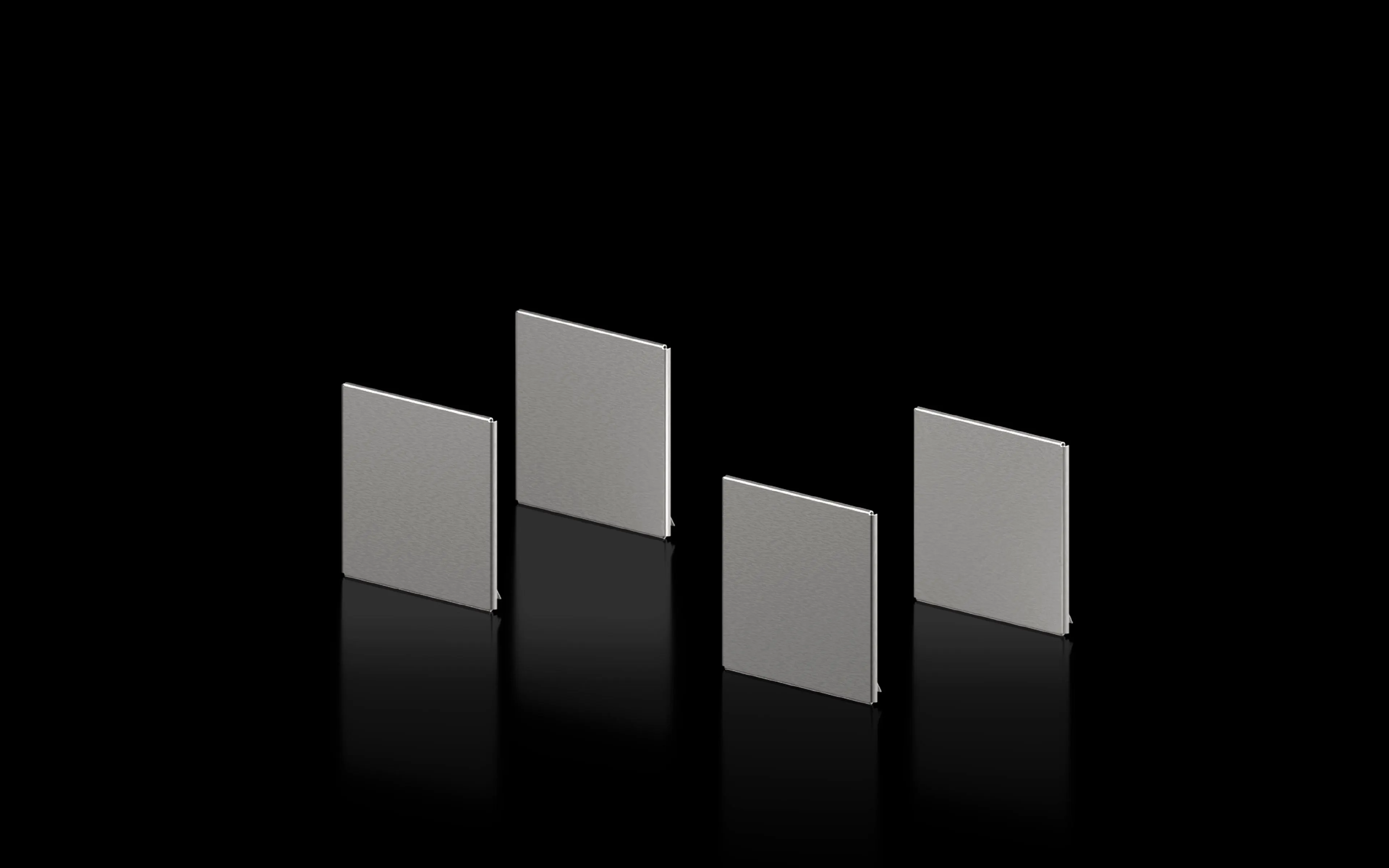 The caps are made from stainless steel 1.4310 (AISI 302), chosen for its corrosion resistance and durability in industrial environments. This material provides robust protection against moisture and dust, helping to extend the life of base corners and reduce maintenance needs. The finish supports easy cleaning and long-term appearance retention in demanding panel applications.