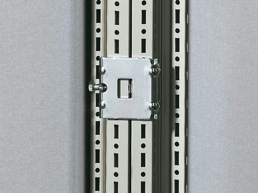 Yes. The zinc-plated sheet steel construction provides corrosion resistance suitable for industrial settings. It is intended for vertical mounting in TS enclosures, helping maintain secure, aligned cabinet assemblies even in environments with dust, moisture, or routine maintenance.