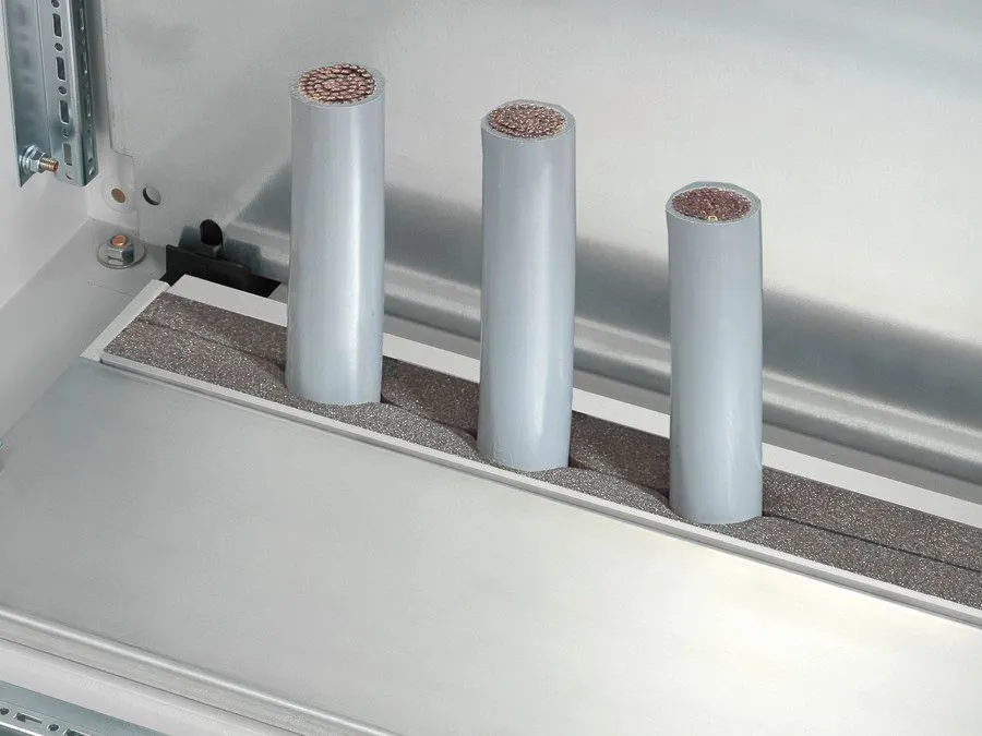 TS 8802.105 is designed specifically for rear-entry cable management on Rittal TS and TP enclosure families. It mounts directly onto the base opening or base tray and gland plate, using plug-in sections that align with 1,000 mm TS and TP widths. The unit ships in packs of four and includes a 30 x 25 mm foam clamp strip for uniform cable support, ensuring consistent compatibility across standard base openings.