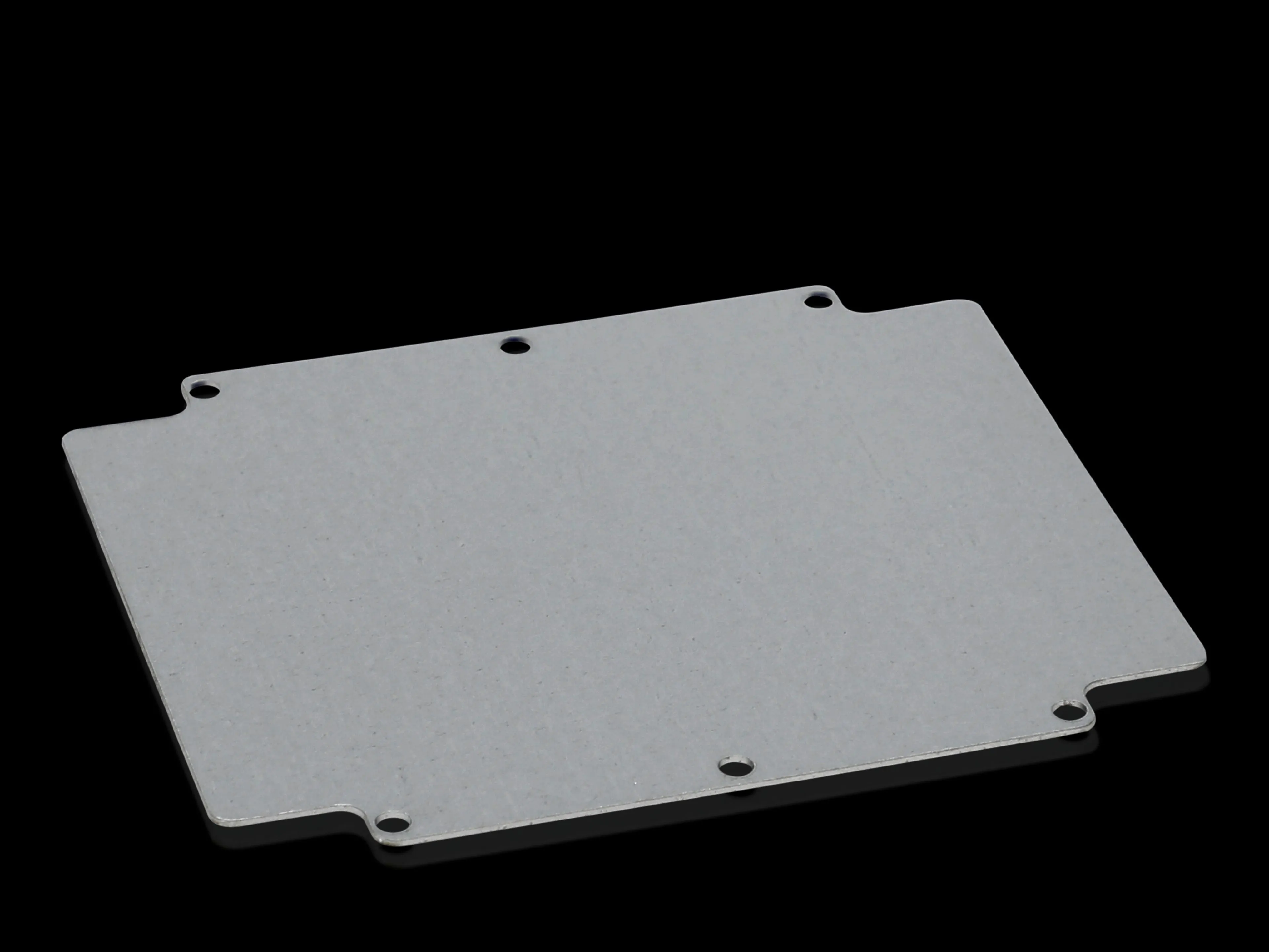 The plate is made from sheet steel with a zinc-plated finish, providing corrosion resistance suitable for industrial interiors. This combination supports long-term durability and reliable performance in harsh environments while maintaining mechanical rigidity.
