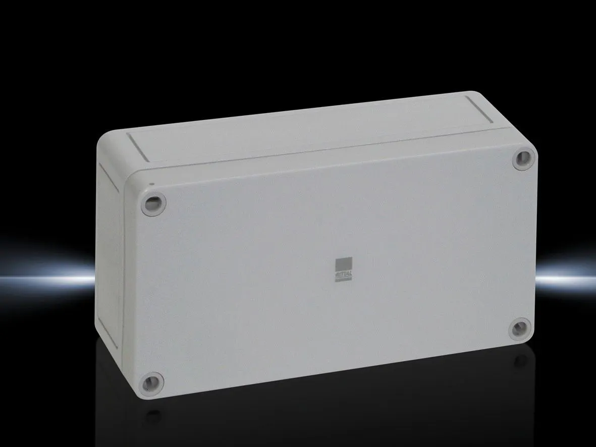 9512000 Rittal: PK Polycarbonate enclosure, WHD: 180x94x57 mm, fibreglass-reinforced polycarbonate, without knockouts, with grey cover