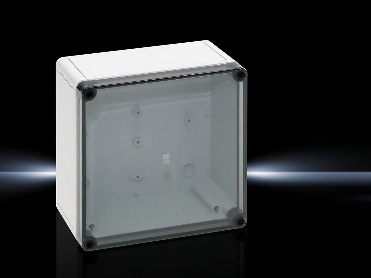 9517100 Rittal: PK Polycarbonate enclosure, WHD: 182x180x90 mm, fibreglass-reinforced polycarbonate, without knockouts, with transparent cover