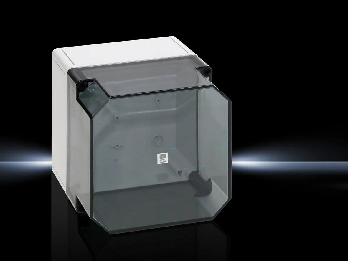9519100 Rittal: PK Polycarbonate enclosure, WHD: 182x180x165 mm, fibreglass-reinforced polycarbonate, without knockouts, with transparent cover