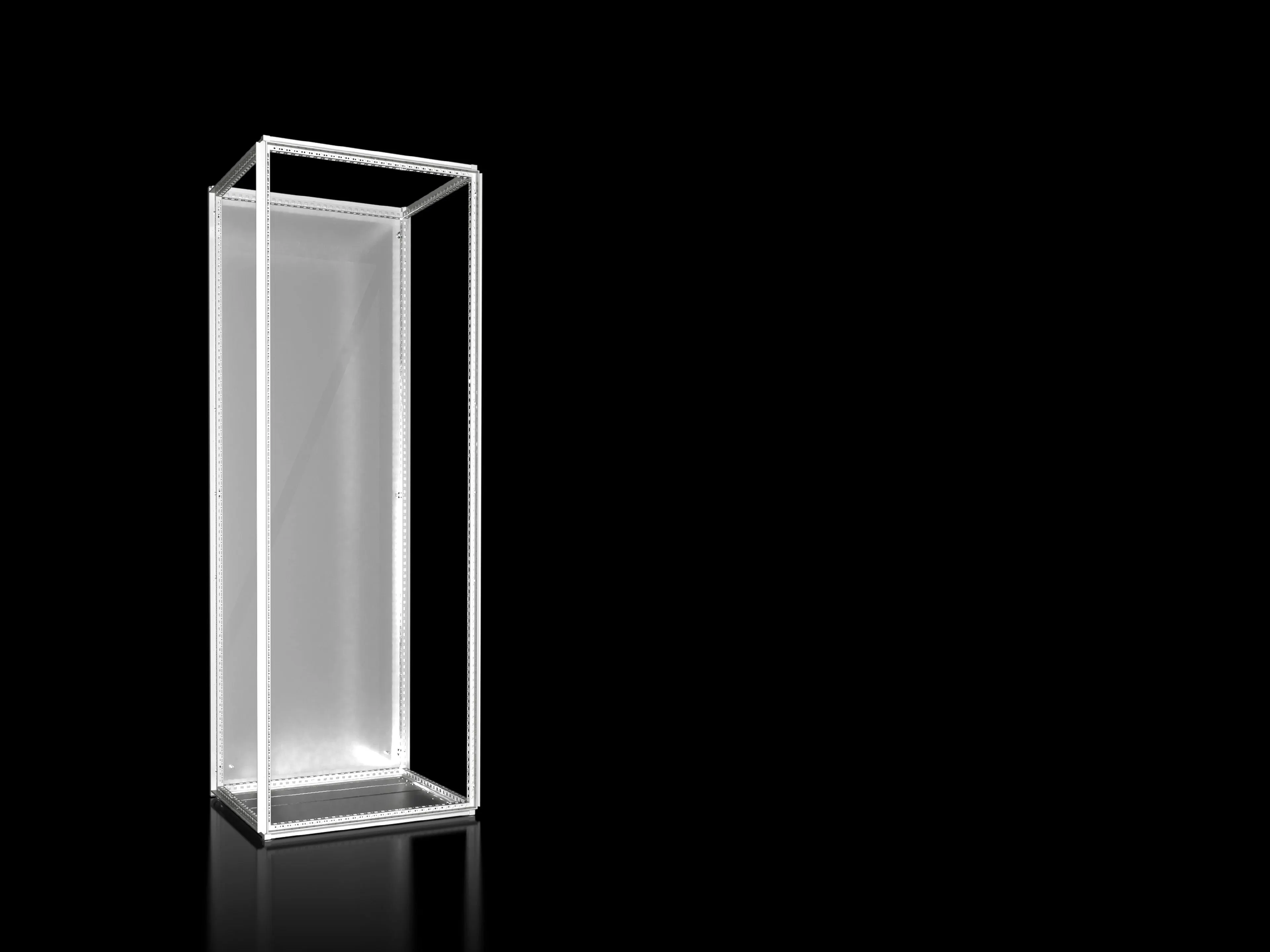 The enclosure offers protection up to IP54 depending on the chosen panels. It is tested to IEC 61439-1/2, ensuring reliable performance for factory environments and compliant assembly for control cabinets in machine automation and process industries.