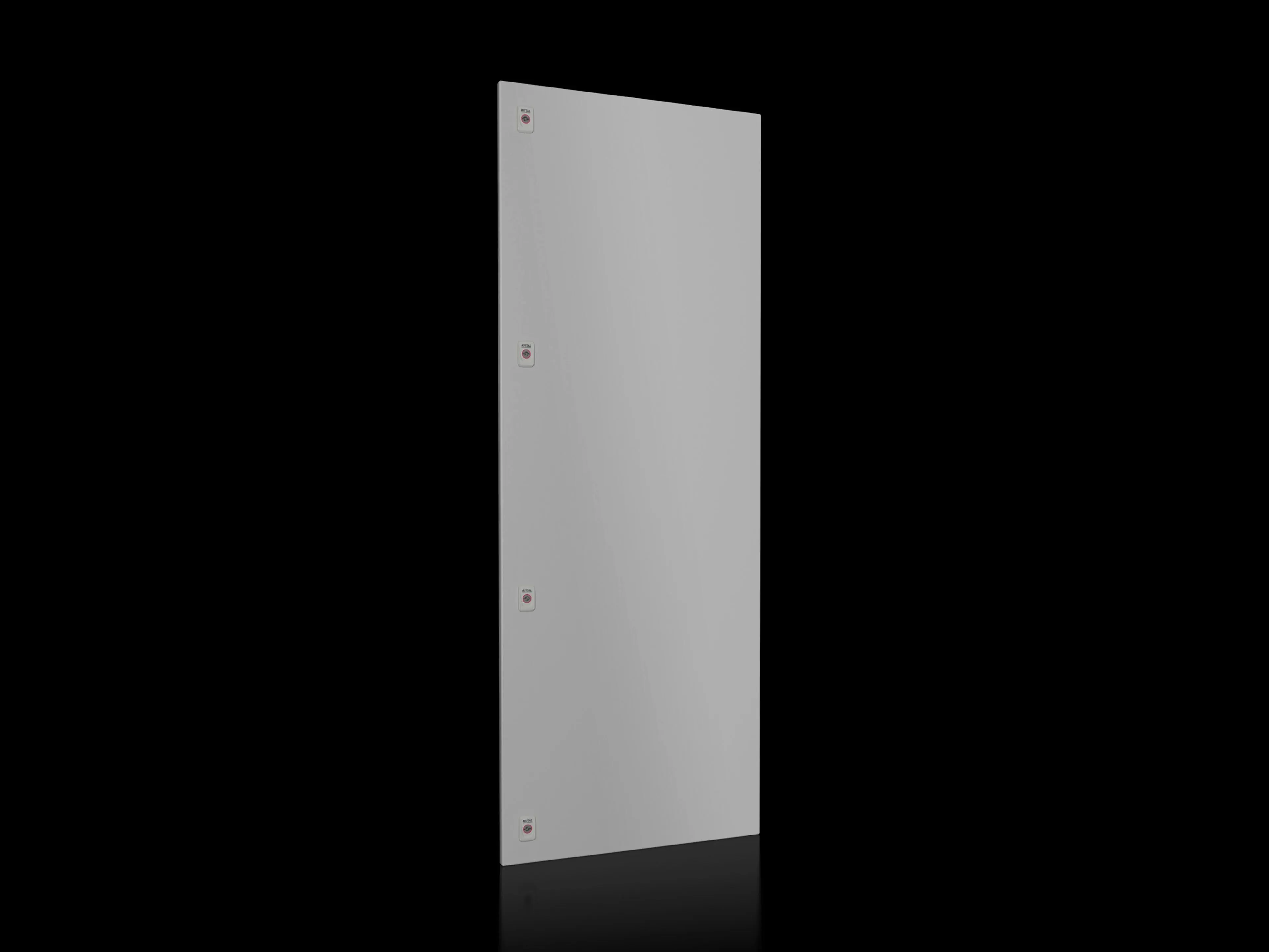 Suitable for VX enclosures instead of a door or rear panel. The partial doors may be combined with one another as required. A trim panel is required at the top and bottom in each case. Door may be optionally hinged on the right or left. In the case of doors without viewing panel (height 600 – 1000 mm), monitor frame 2305.000 may be installed. Standard double-bit lock insert may be exchanged for lock inserts, type A.