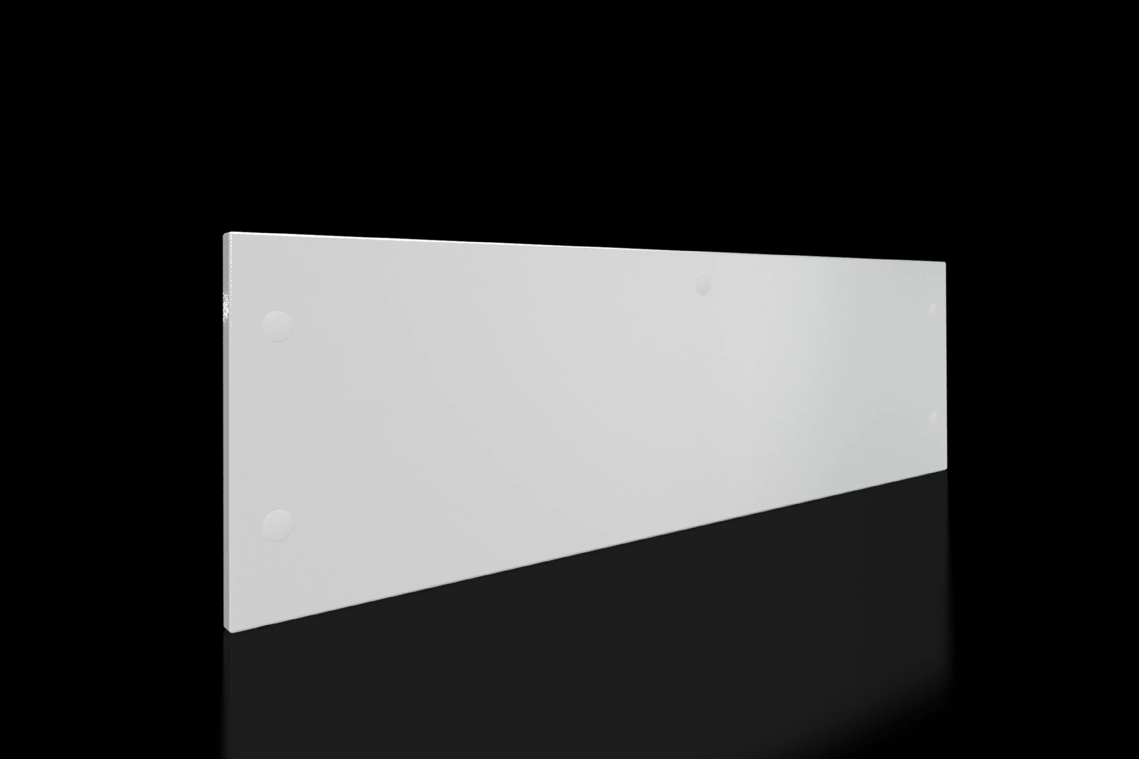 To install, align the trim panel to the top edge of the enclosure, attach using the supplied assembly parts, and use the included cross member for mounting stability. The panel is designed to be removed from the outside by unscrewing, which simplifies maintenance when partial doors are in use. Ensure a clean, dry mounting surface and verify the 1.5 mm steel thickness is compatible with your cabinet depth.