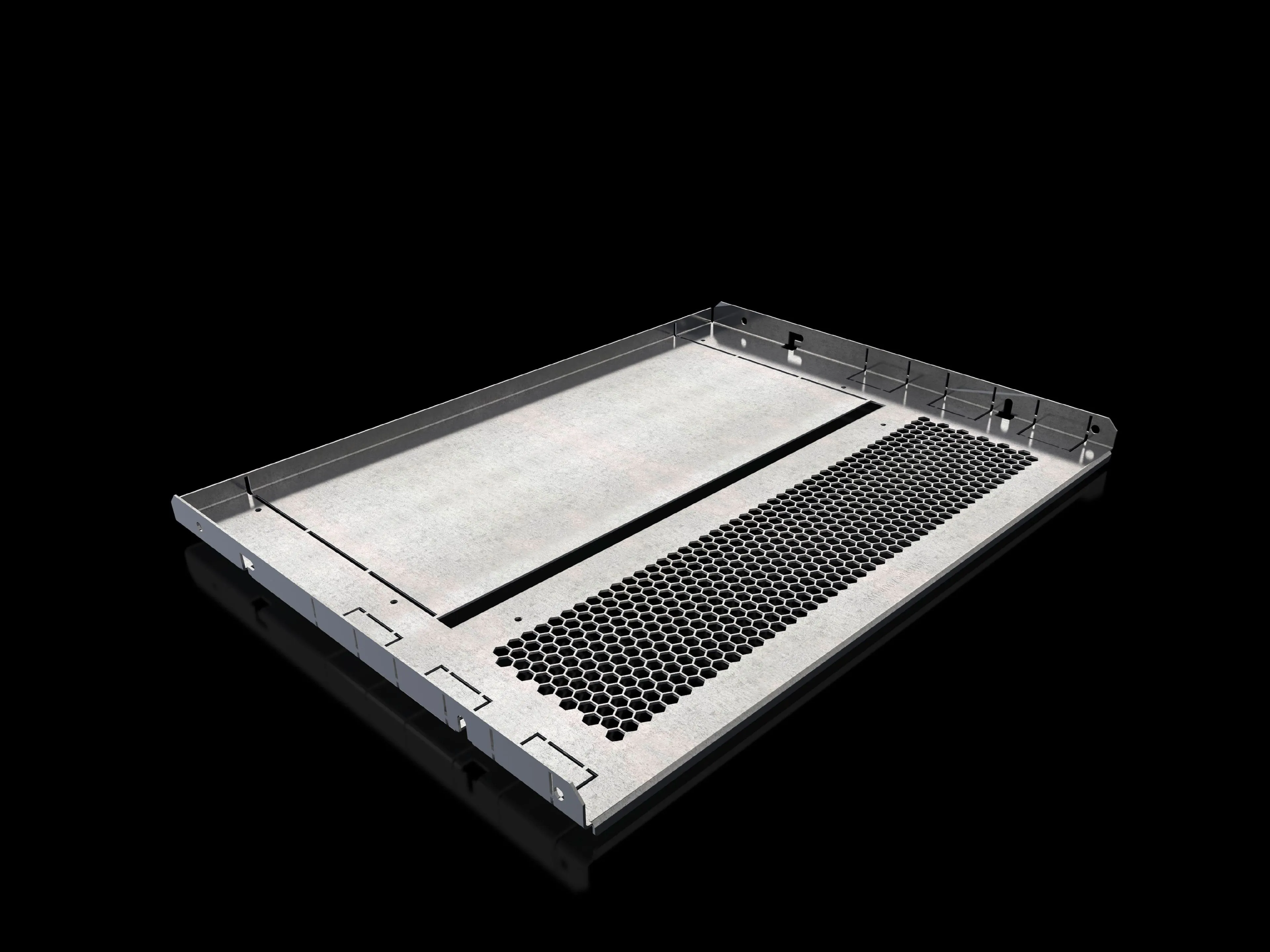 For the horizontal separation of compartments. In combination with the side panels, this creates Form separation to Form 1 to 4. For attachment to the compartment side panel or the enclosure section. The integral cut-outs with pre-punched knock-out option are used for the vertical routing of control lines or cable ducts and for the routing of distribution busbars or connection kits.