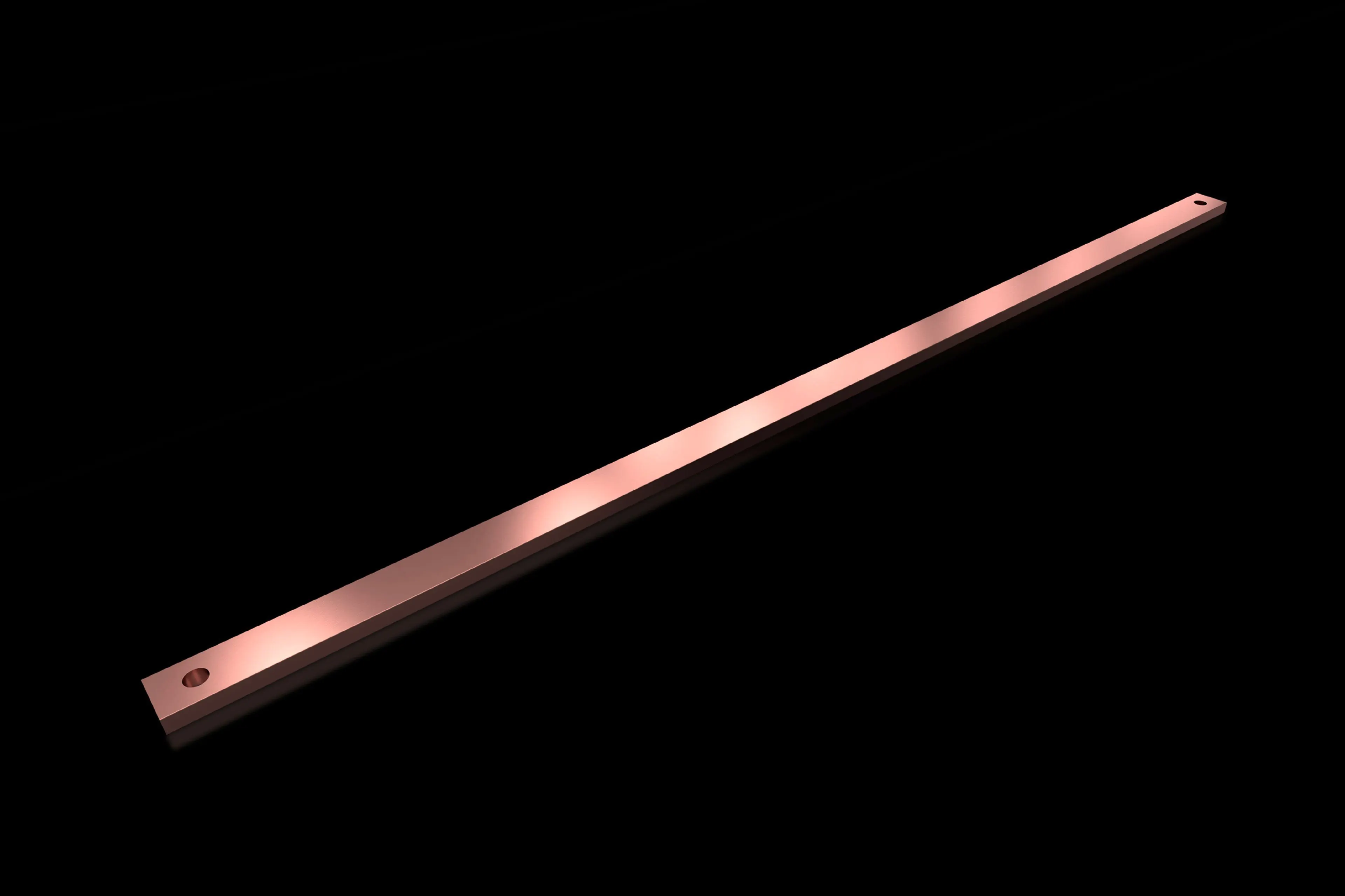 The busbar is made from E-Cu with a cross-section of 30x10 mm and copper weight of 2.4 kg per piece (4.86 kg per pack). Length is 900 mm, with 11.5 mm holes, ensuring solid current paths and low resistive losses in panel power distribution.