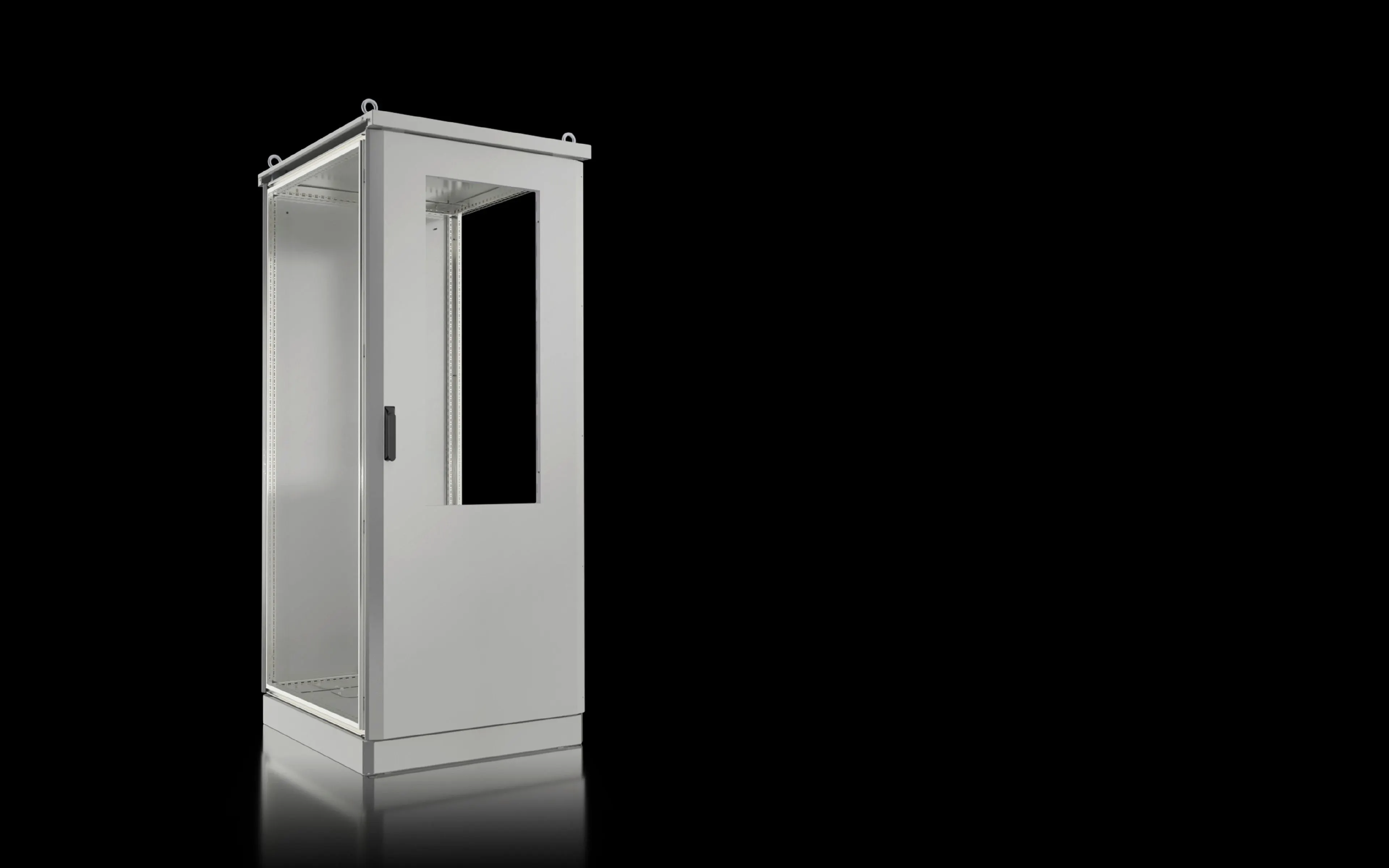 The enclosure includes a cut-out designed for an outdoor climate control unit up to 1.5 kW, enabling direct integration with cooling or heating devices. To seal the cut-out properly, a climate control unit or adaptor plate is required for a weather-tight installation.