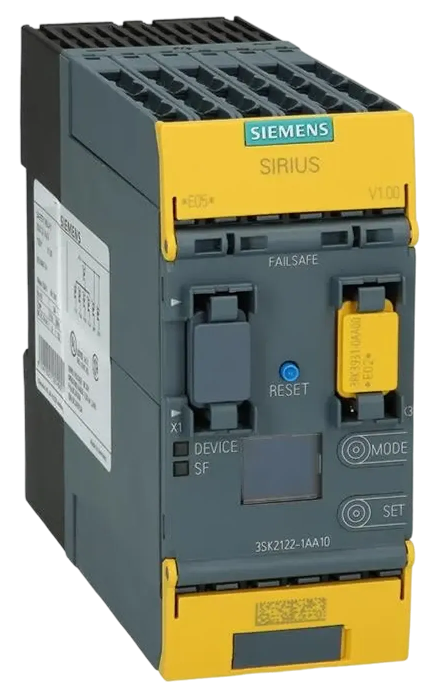 SIRIUS 3SK2 safety relays monitor emergency stops and protective doors on assembly lines ensuring ISO 13849 compliance. Siemens contactors control high-power motors in conveyor systems protecting operators.