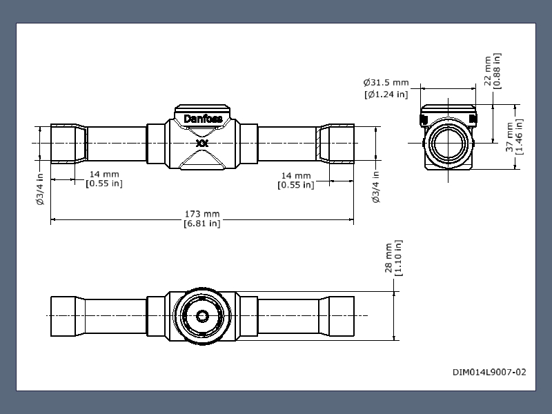 014L0185 Danfoss: Inlet connection type: Solder, ODF, Inlet size [mm]: 19.00, Outlet connection type: Solder, ODF, Outlet size [mm]: 19.00