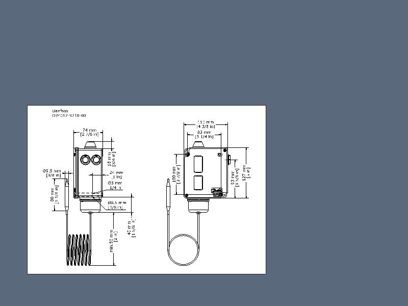 017-500566 Danfoss: Temperature range [°C]: 25 - 90, Reset function: Auto, Contact function: SPDT, Sensor type: Remote bulb, Capillary tube length [mm]: 2000, Enclosure rating IP: IP66