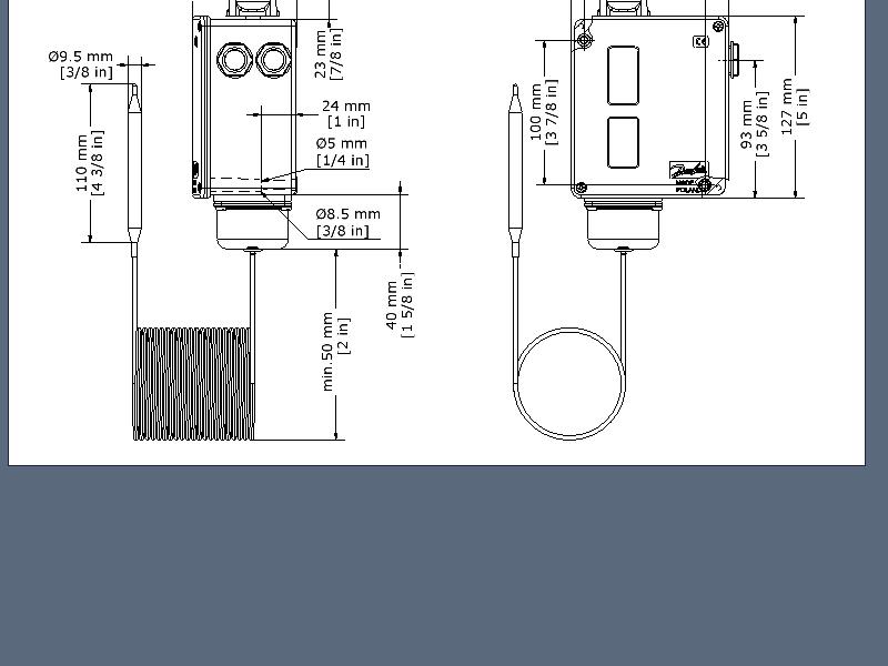 017-502266 Danfoss: Temperature range [°C]: 25 - 90, Reset function: Auto, Contact function: SPDT, Sensor type: Remote bulb, Capillary tube length [mm]: 5000, Enclosure rating IP: IP66