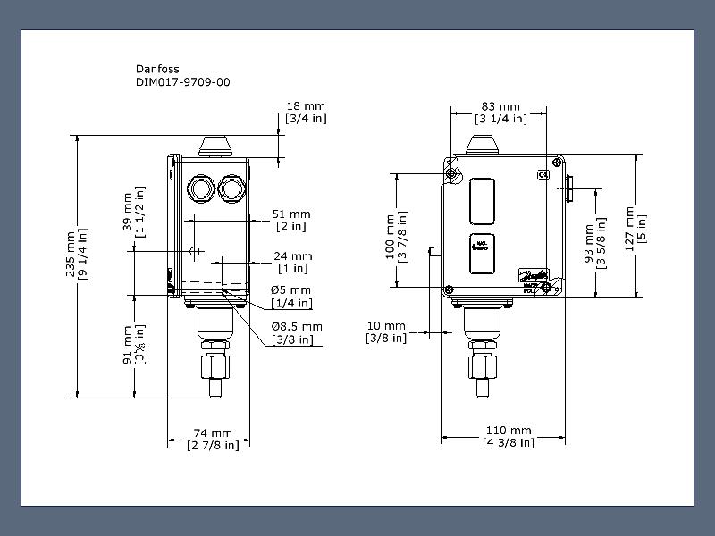 017-504766 Danfoss: Regulation range [bar] Pe: 4.00 - 17.00, Differential [bar]: 1.30, Contact function: SPDT, Reset function: Manual Max, Pressure connection type: G, Pressure connection size: 3/8, Pressure Male/Female: Male, Enclosure rating IP: IP54, Max. Working Pressure [bar]: 22.0