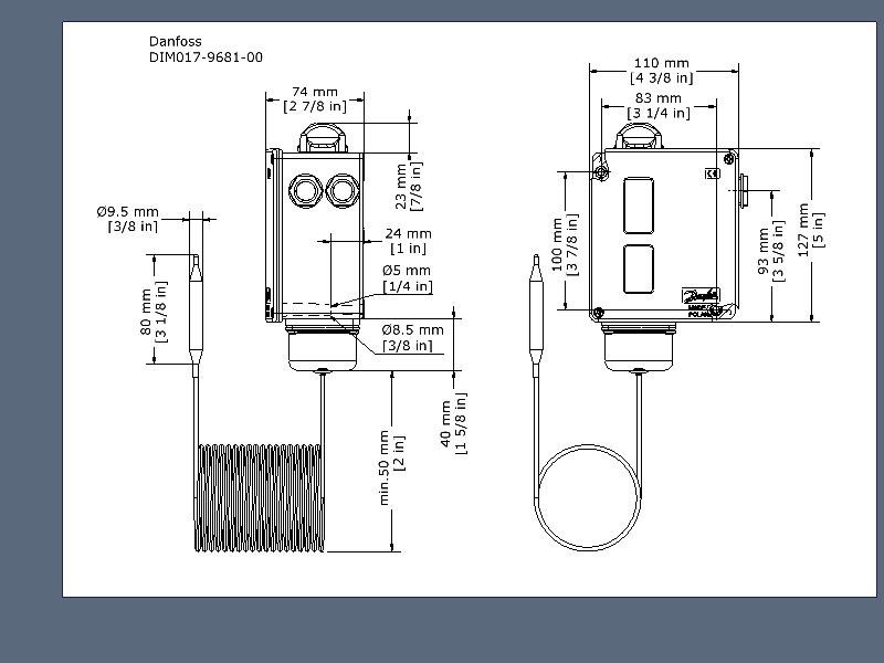 017-505566 Danfoss: Temperature range [°C]: -25 - 15, Reset function: Auto, Contact function: SPDT, Sensor type: Remote bulb, Capillary tube length [mm]: 5000, Enclosure rating IP: IP66