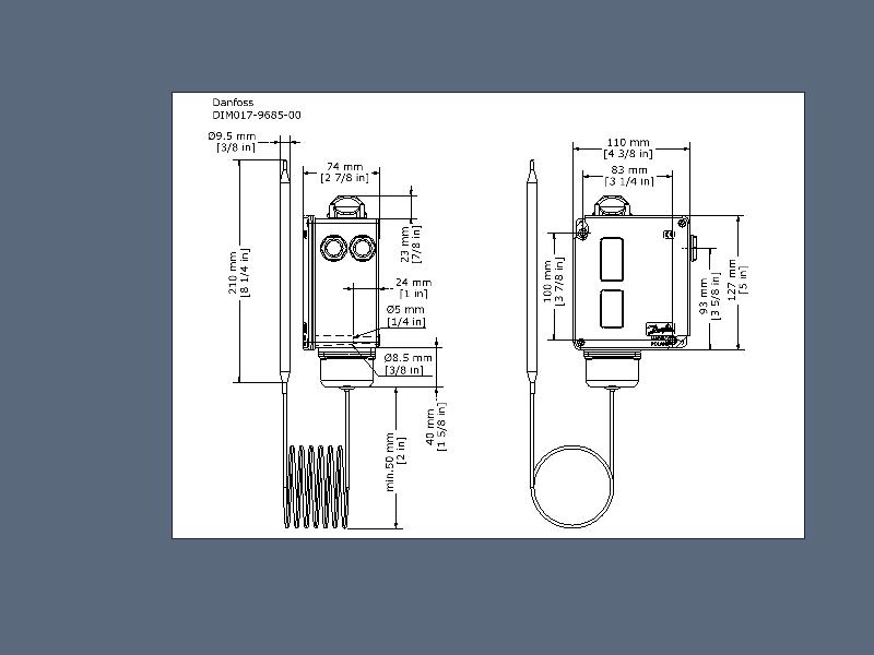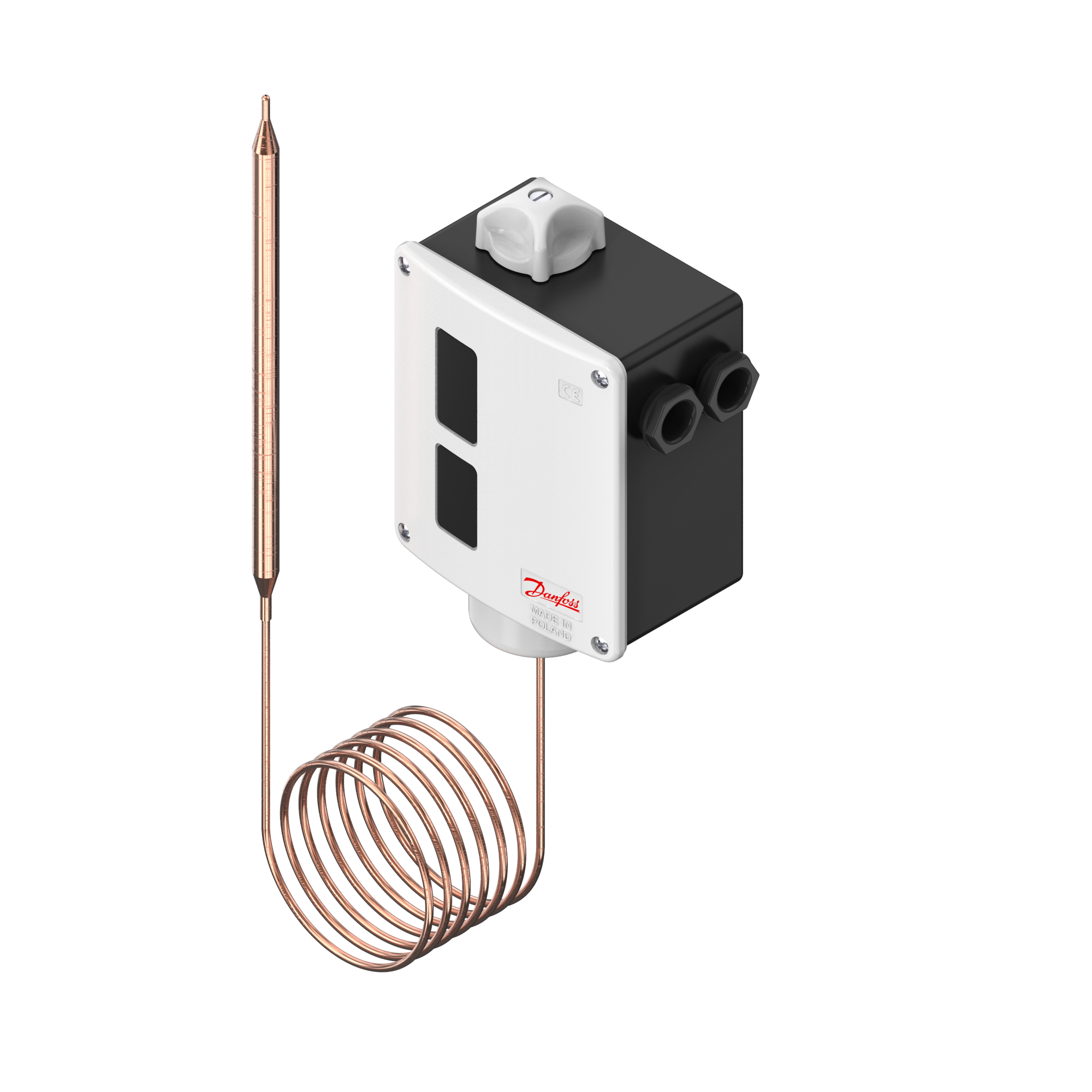 017-508966 Danfoss: Temperature range [°C]: -5 - 10, Reset function: Auto, Contact function: SPDT, Sensor type: Remote bulb, Capillary tube length [mm]: 2000, Enclosure rating IP: IP66