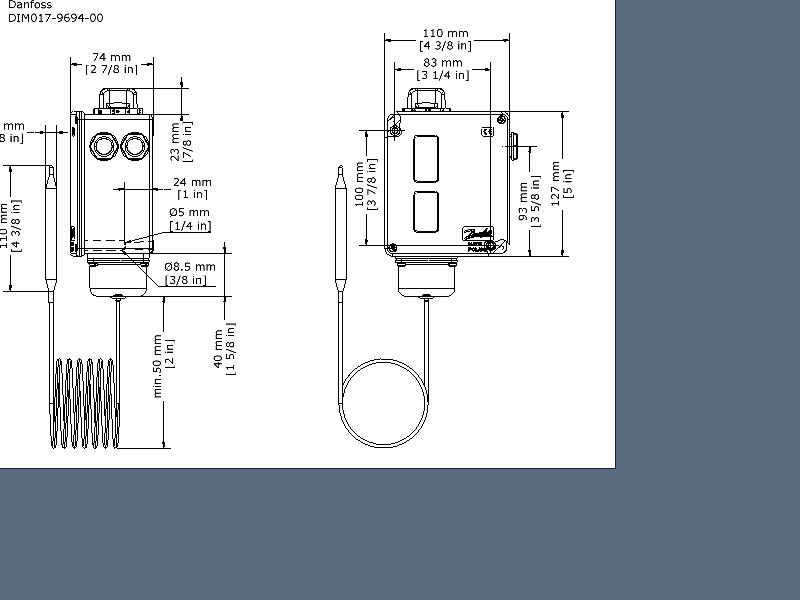 017-511566 Danfoss: Temperature range [°C]: 8 - 32, Reset function: Auto, Contact function: SPDT, Sensor type: Remote bulb, Capillary tube length [mm]: 2000, Enclosure rating IP: IP66