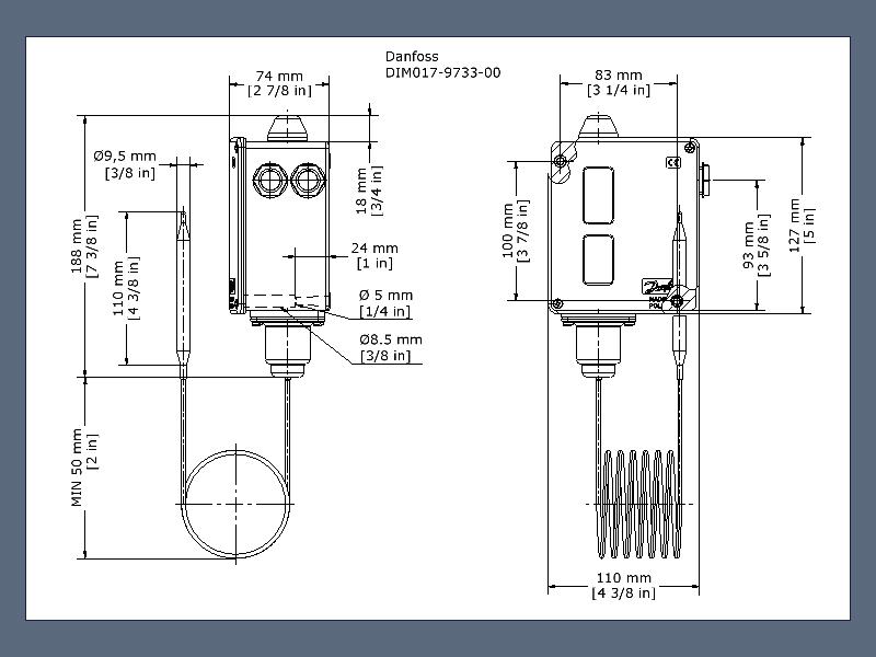 017-513766 Danfoss: Temperature range [°C]: 70 - 150, Reset function: Auto, Contact function: SPDT, Sensor type: Remote bulb, Capillary tube length [mm]: 2000, Enclosure rating IP: IP66