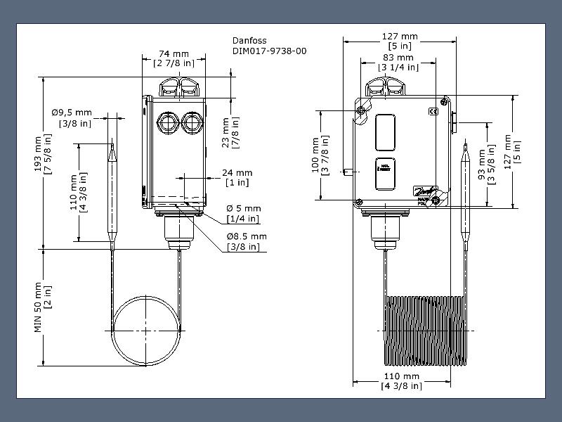 017-514166 Danfoss: Temperature range [°C]: 70 - 150, Reset function: Manual Max, Contact function: SPDT, Sensor type: Remote bulb, Capillary tube length [mm]: 5000, Enclosure rating IP: IP54