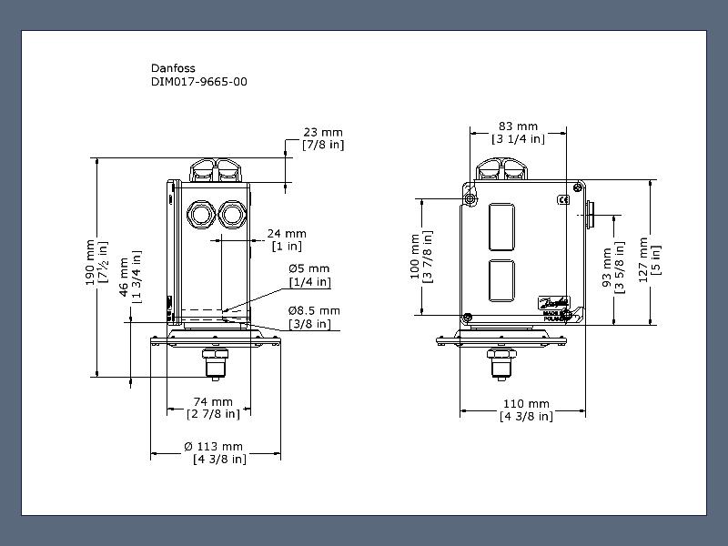 017-519666 Danfoss: Regulation range [bar] Pe: 0.00 - 0.30, Differential [bar]: 0.01 - 0.05, Contact function: SPDT, Reset function: Auto, Pressure connection type: G, Pressure connection size: 3/8, Pressure Male/Female: Male, Enclosure rating IP: IP66, Max. Working Pressure [bar]: 0.4